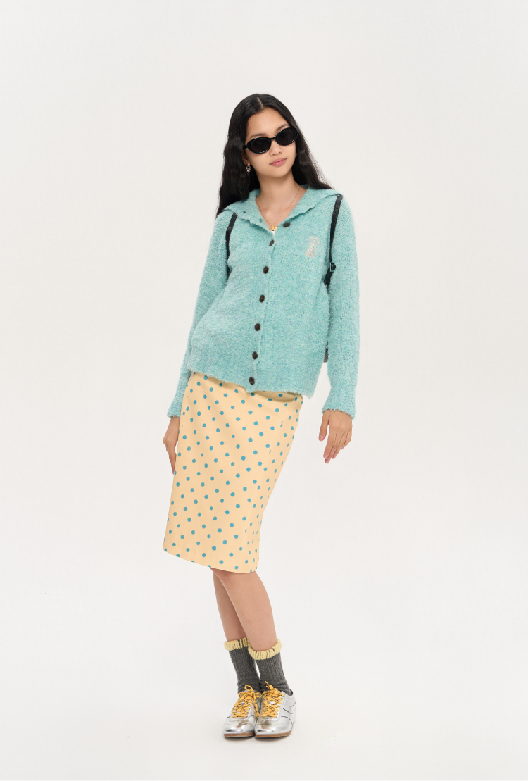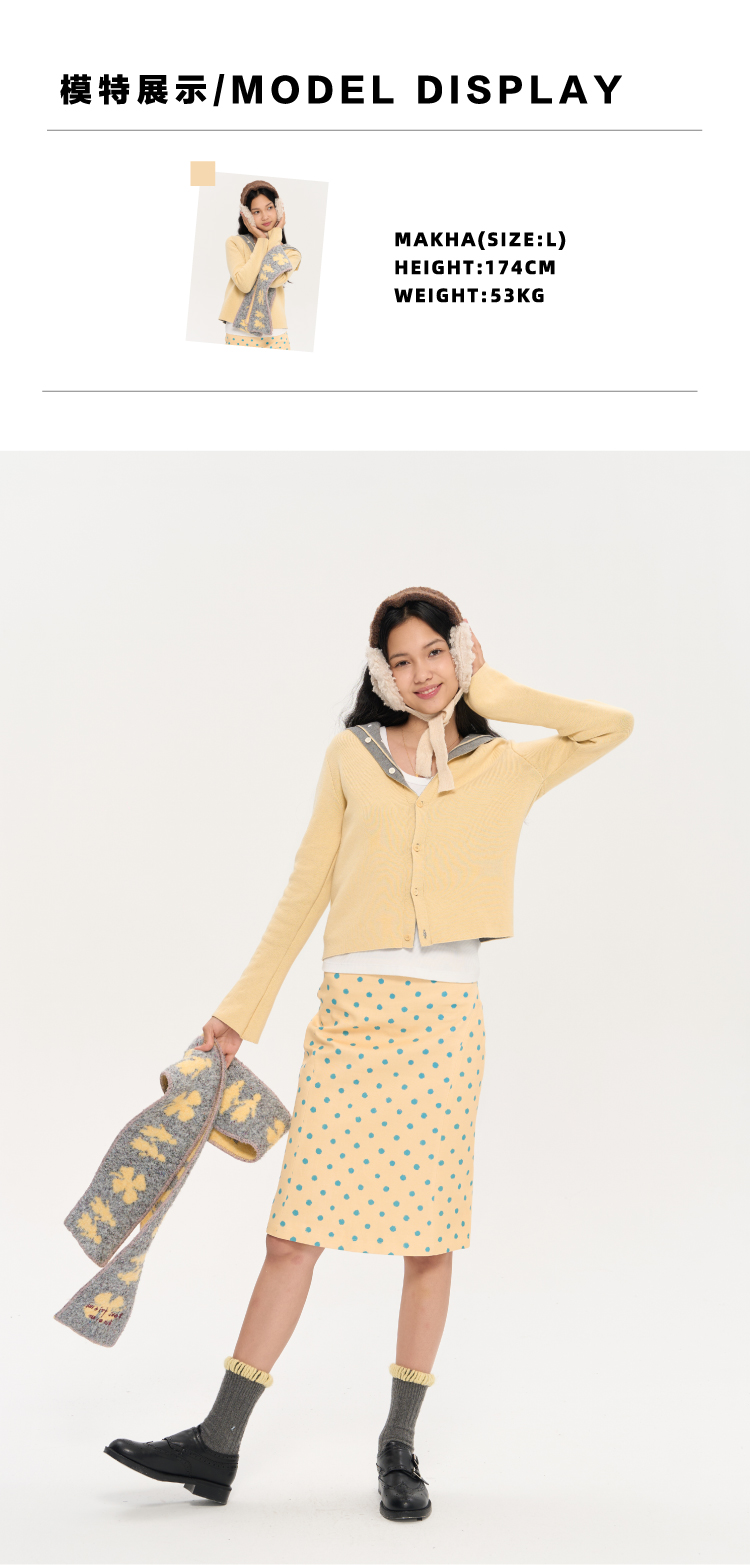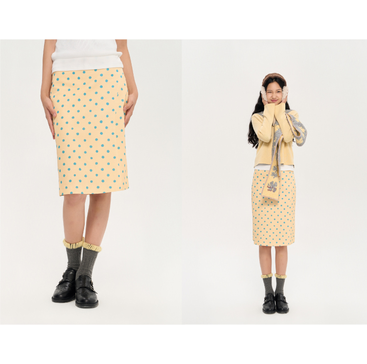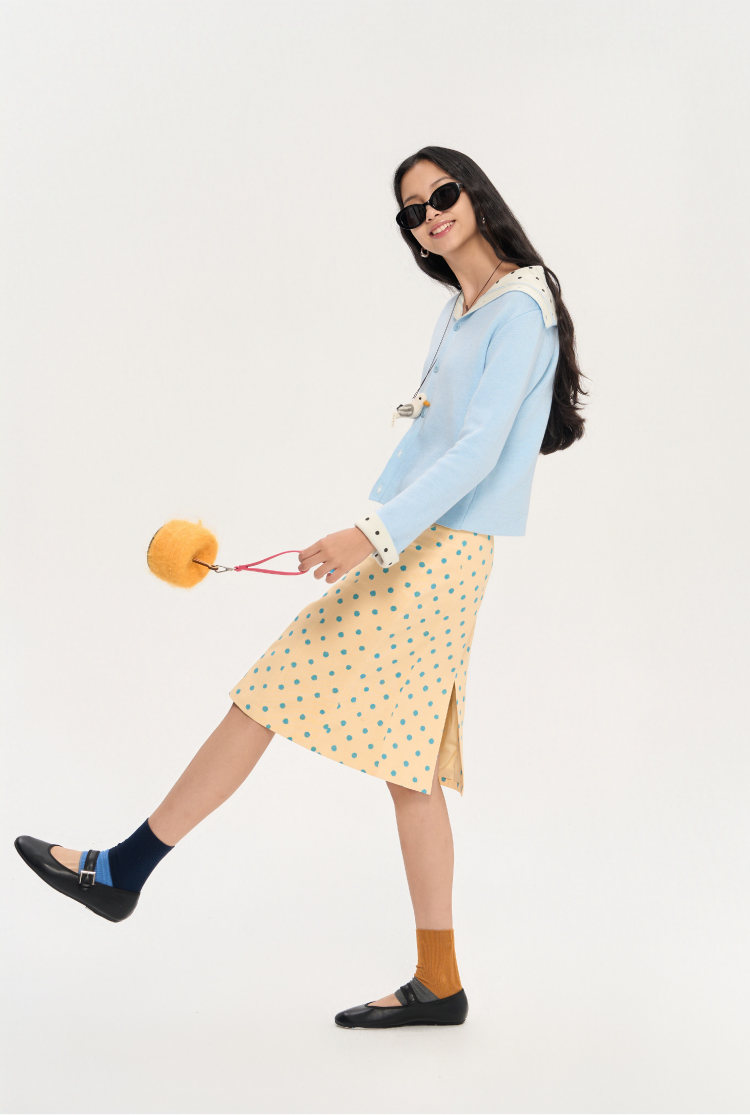 heris/H53117/波点印花 立裁分割微喇 直筒显瘦百搭半裙