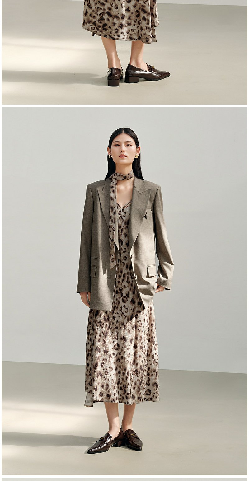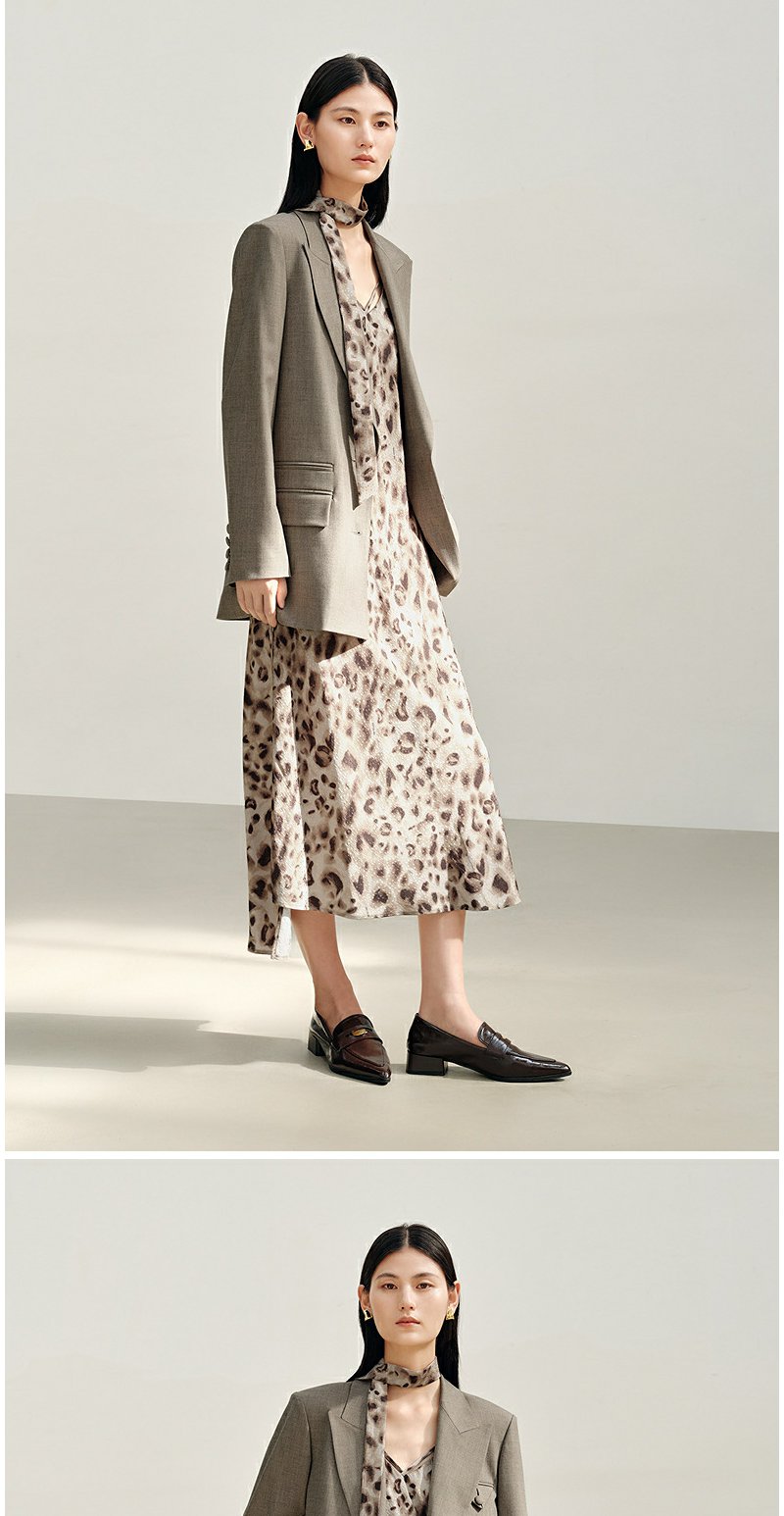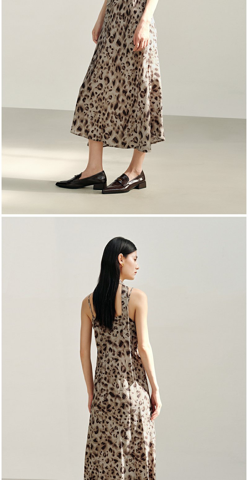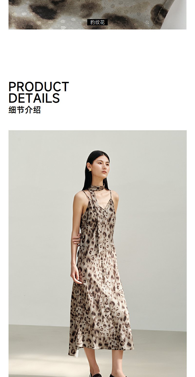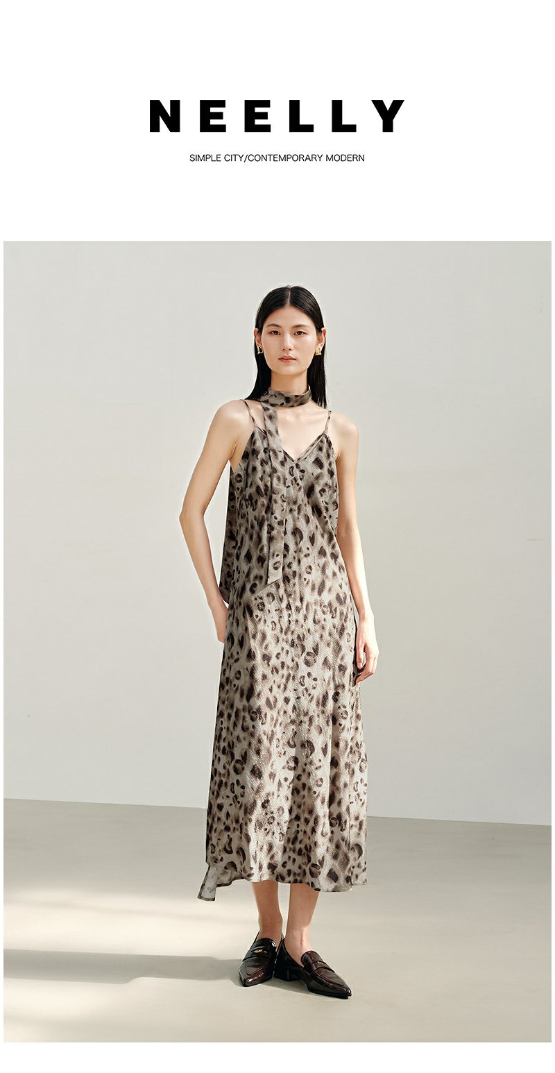 NEELLY纳俪商场同款秋新款复古豹纹潮流吊带连衣裙女个性百搭长裙N25082Y01105