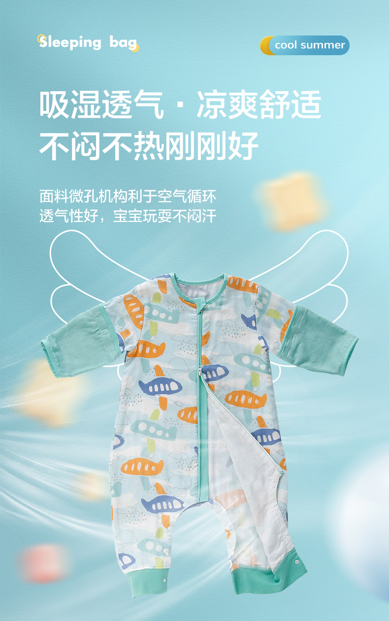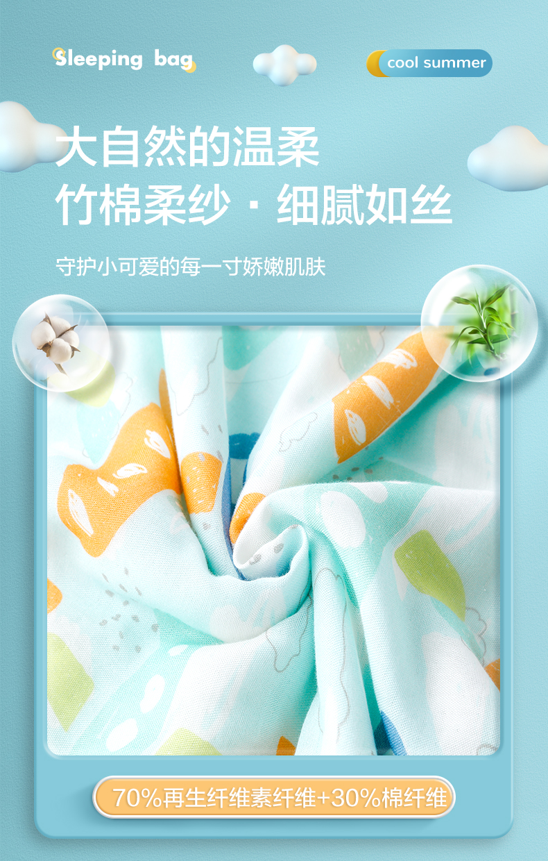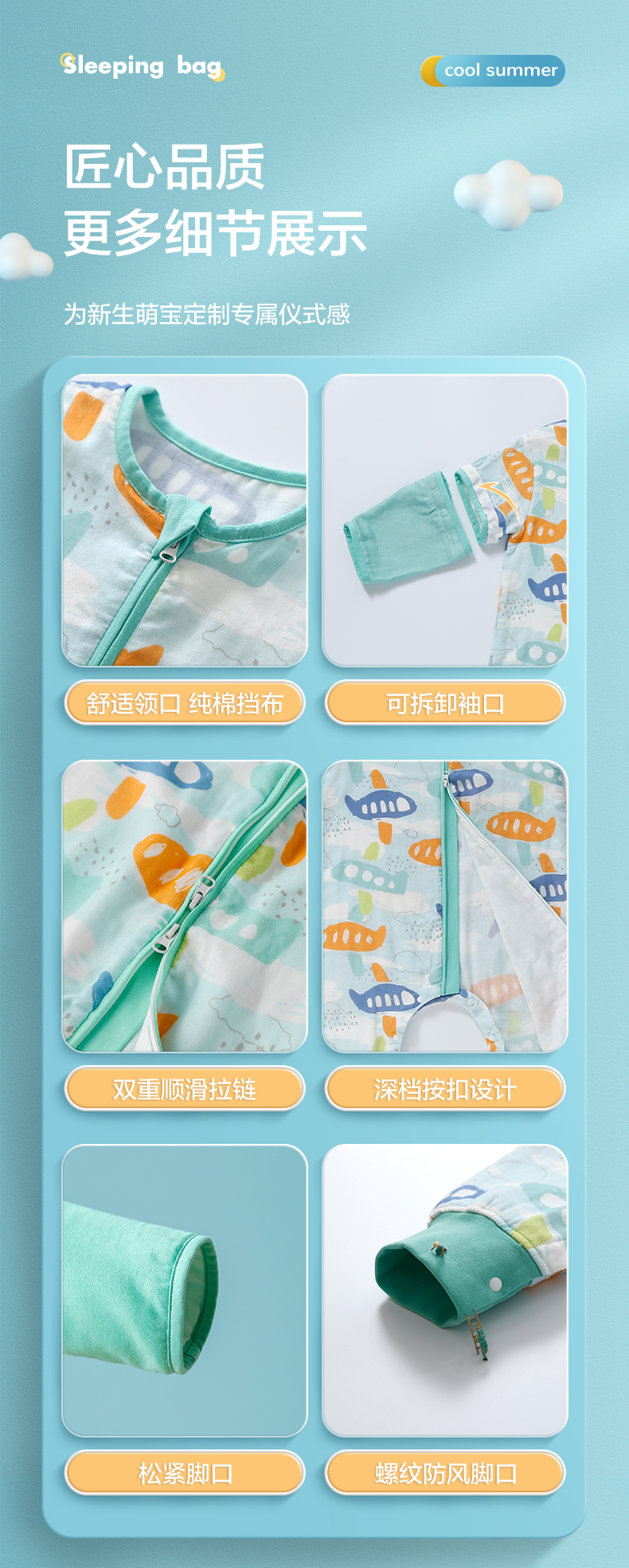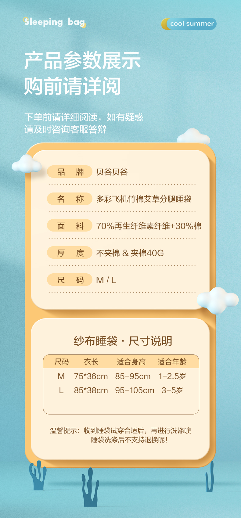 23X贝谷贝谷多彩飞机竹棉艾草分腿睡袋绿色M码(不夹棉)75cm*36cm(M)