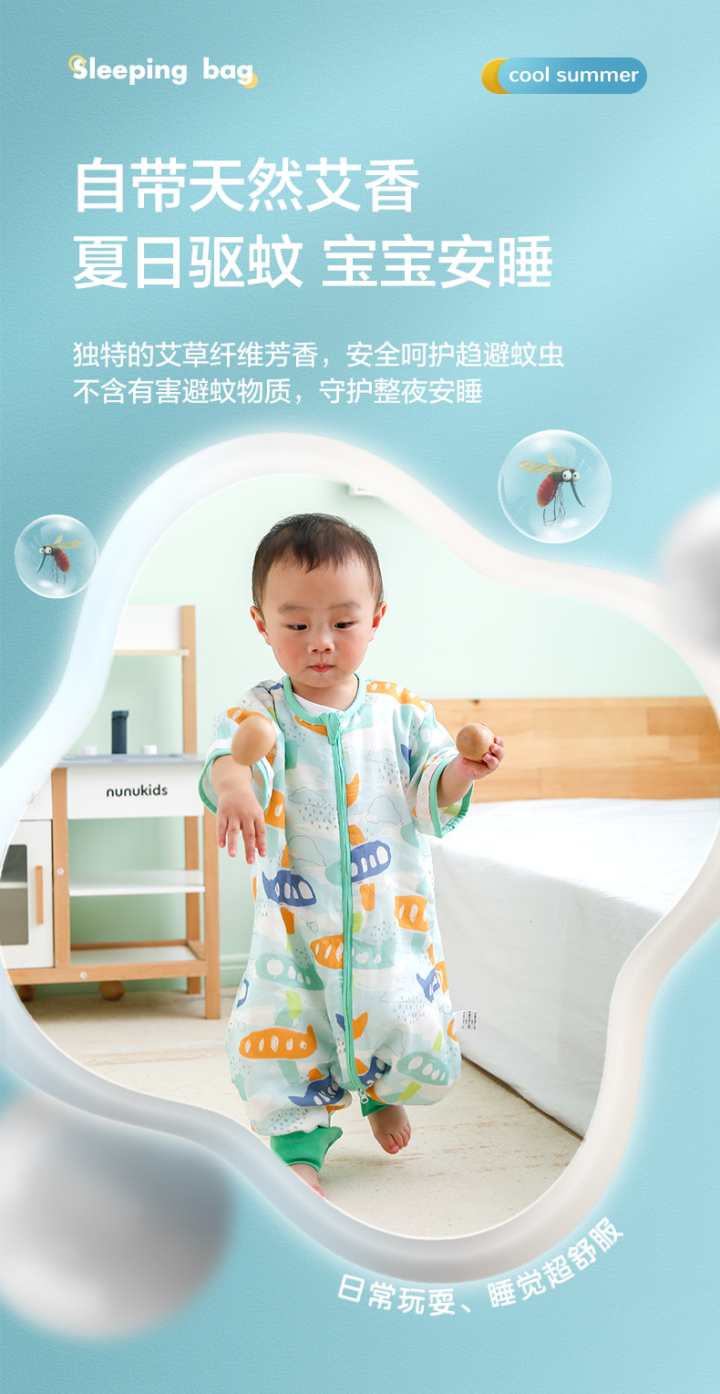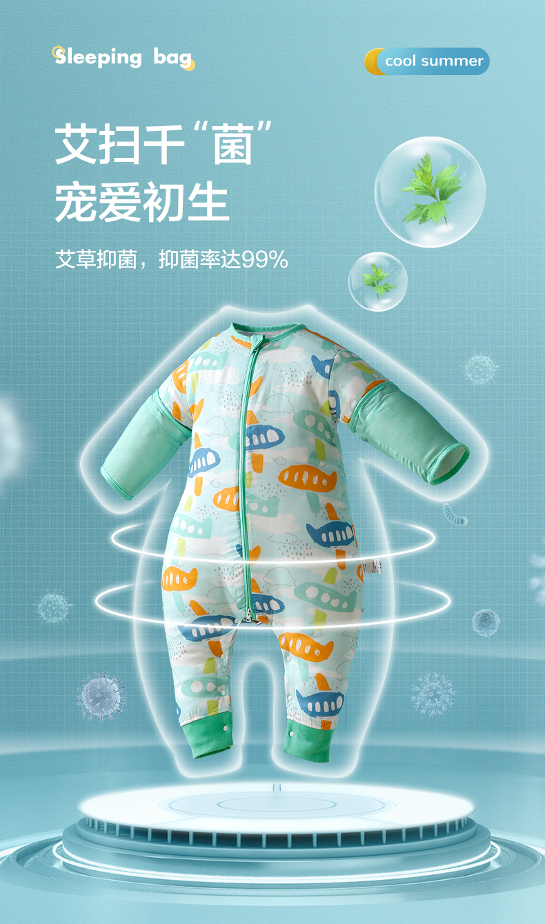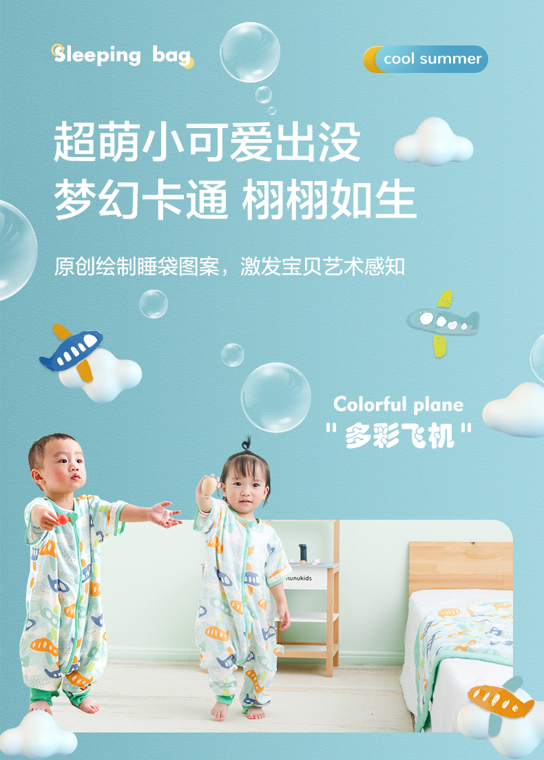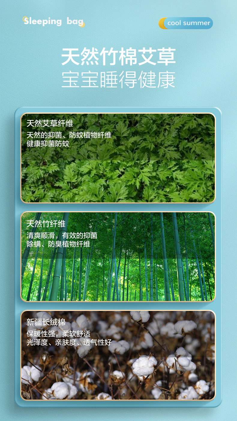 23X贝谷贝谷多彩飞机竹棉艾草分腿睡袋绿色M码(不夹棉)75cm*36cm(M)