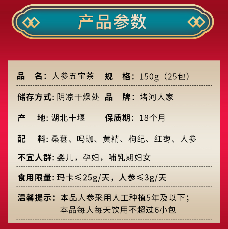 【十堰】十堰供销人参五宝茶150克/盒*2盒