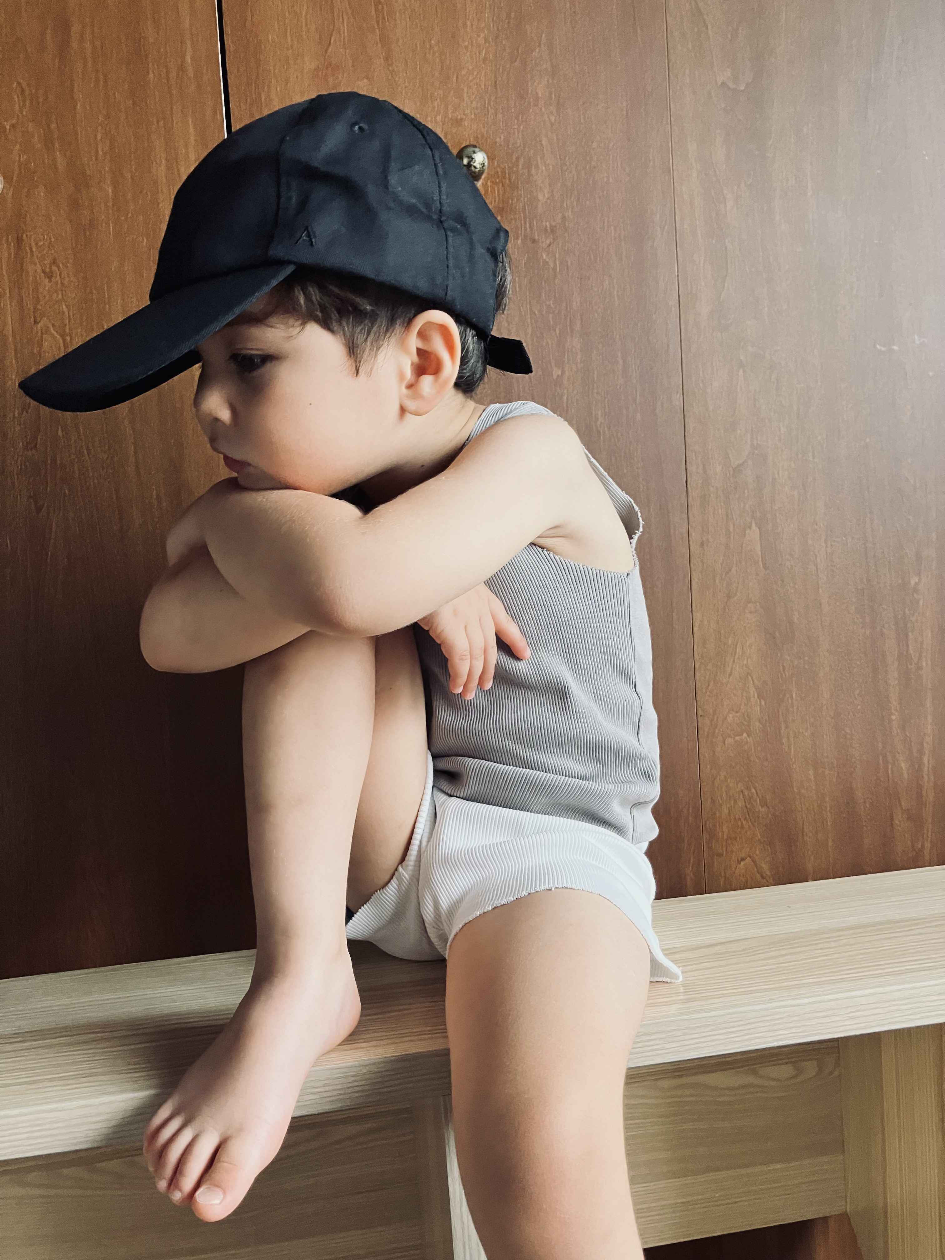 A basic brand 26ss新品 儿童罗纹背心短裤短袖T恤
