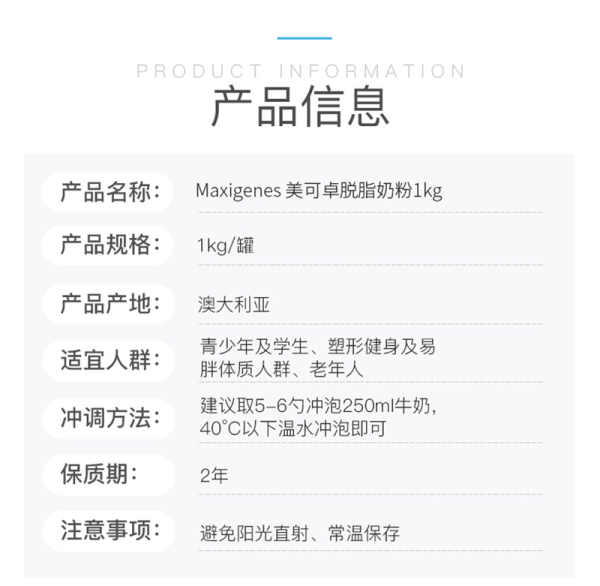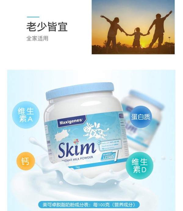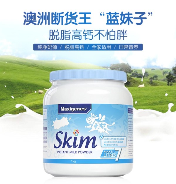 【澳洲仓】Maxigenes 美可卓 脱脂高钙奶粉1KG 1罐装(000174)