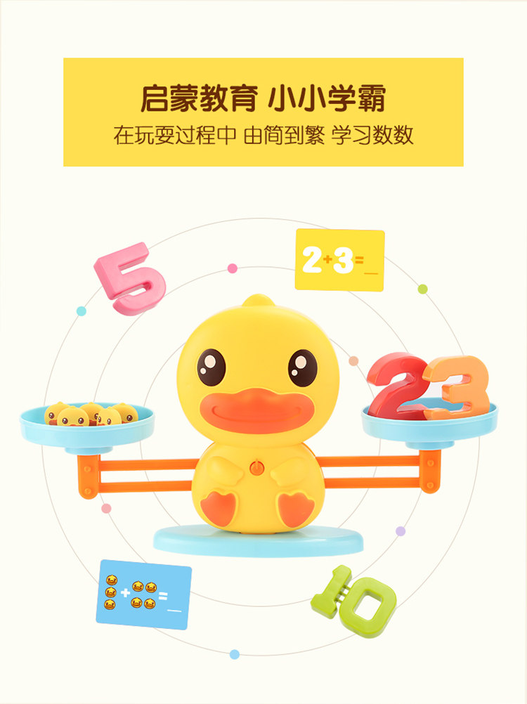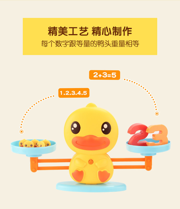 B.Duck小黄鸭数字启蒙天平秤数学加减儿童益智亲子互动玩具3-6岁