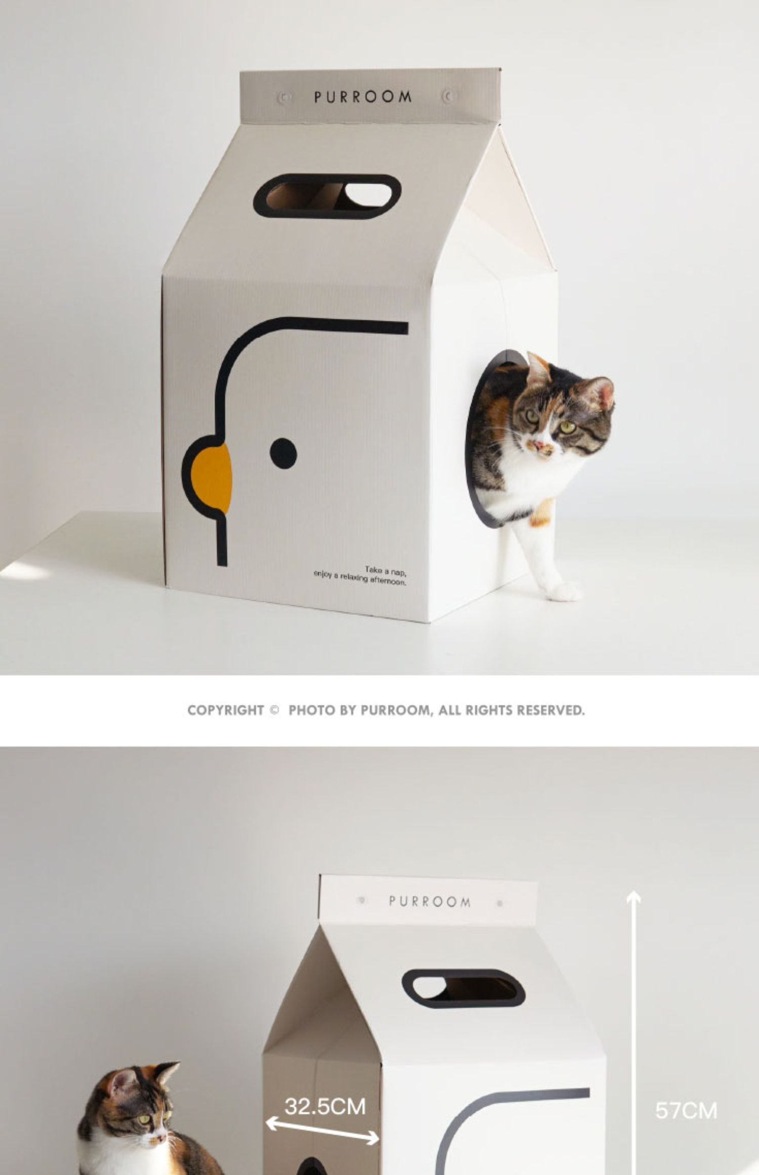PURROOM牛奶盒猫窝猫抓板别墅立式房子瓦楞纸纸板箱耐磨抓猫玩具