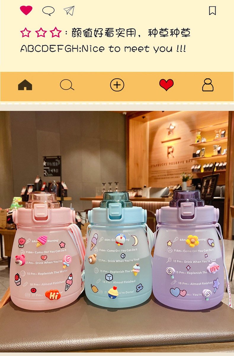 【爆款热卖】女孩们的必备神器!夏日清凉,网红运动水杯女季!独特可爱大肚设计,时尚便携,大容量,吸管杯,学生跨境水壶瓶,让你轻松应对夏日高温!