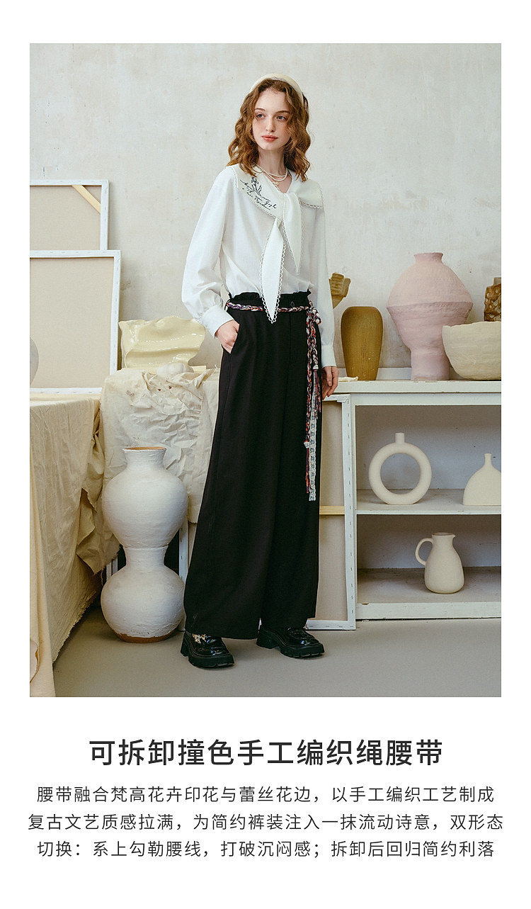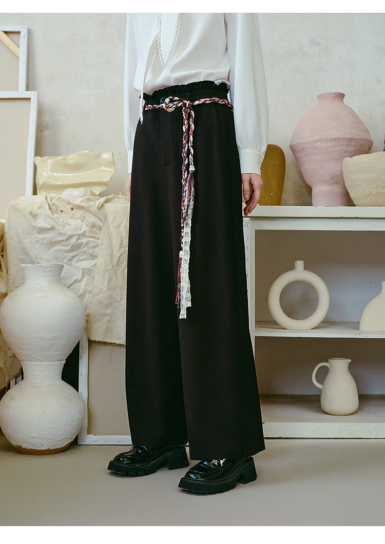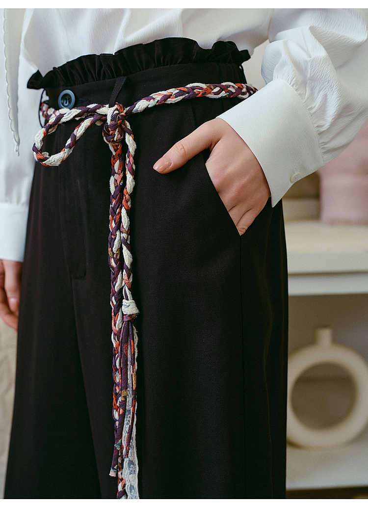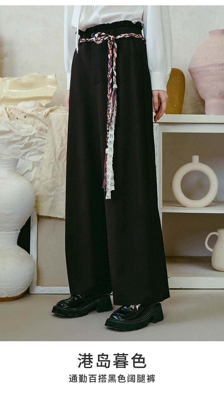 两三事梵高文艺 港岛暮色 2026春季新款麻花辫腰带休闲裤女宽松
