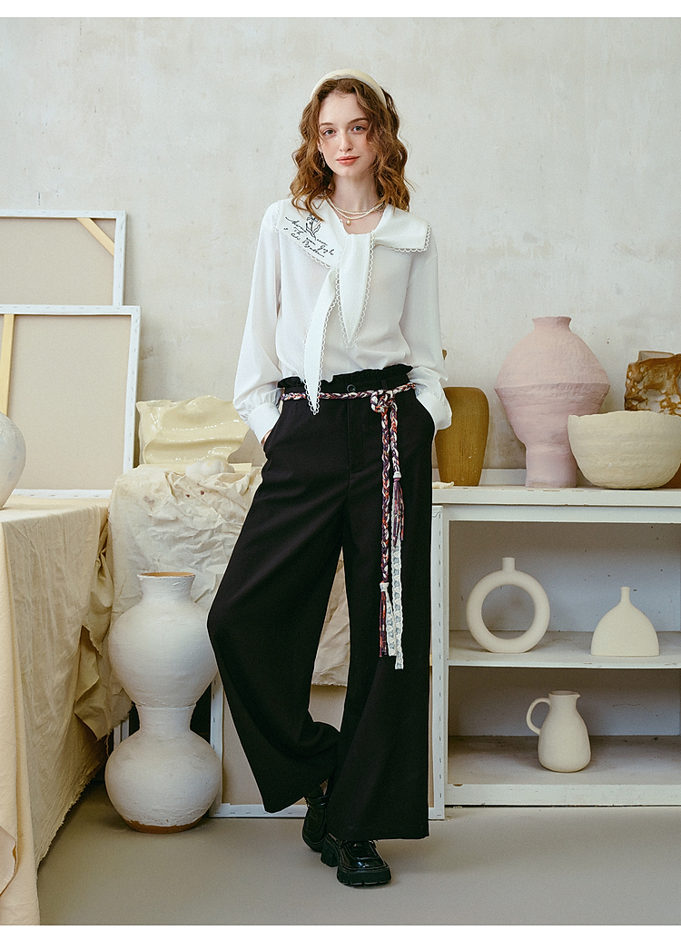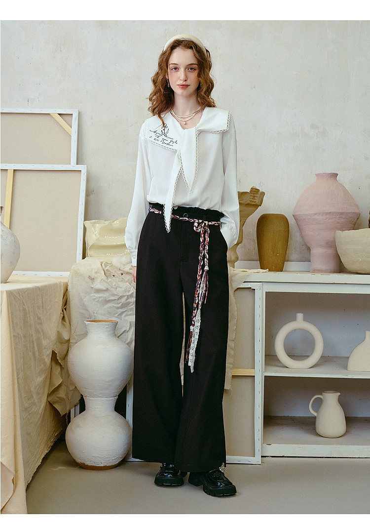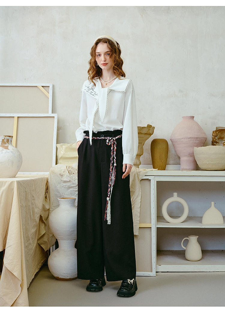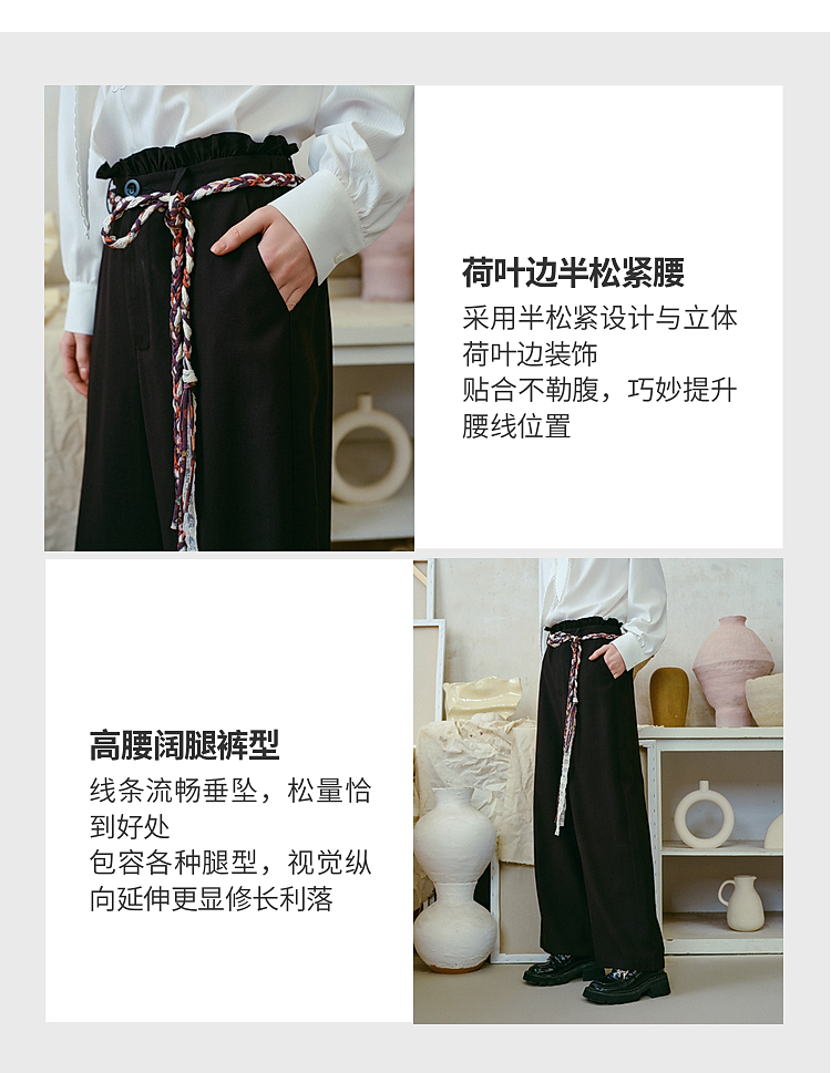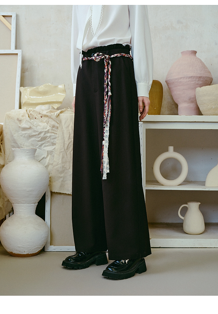 两三事梵高文艺 港岛暮色 2026春季新款麻花辫腰带休闲裤女宽松