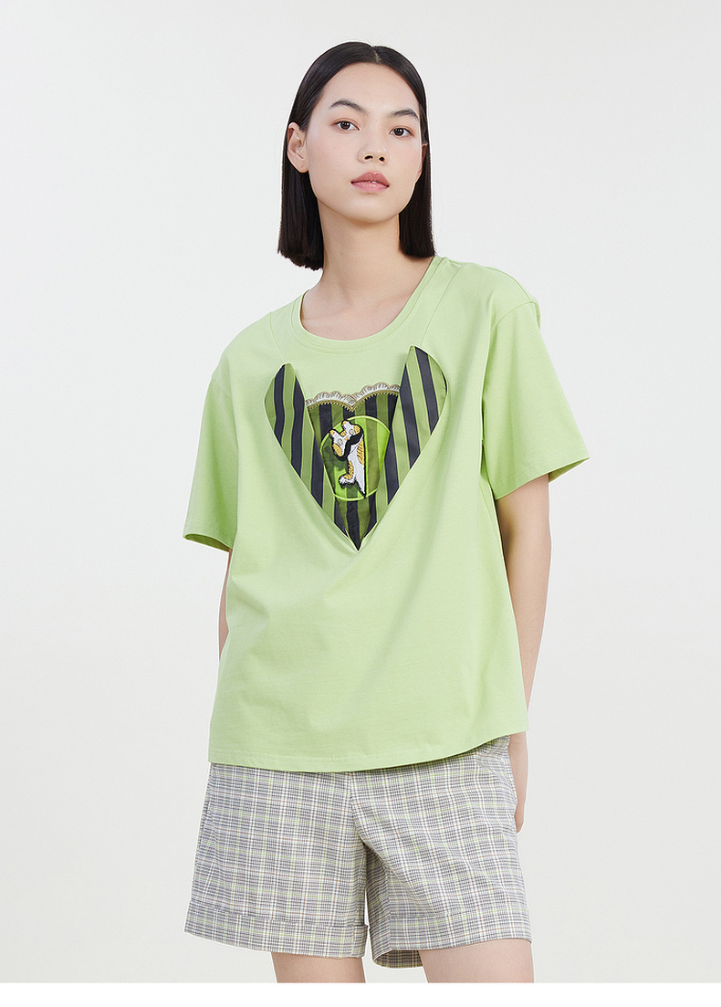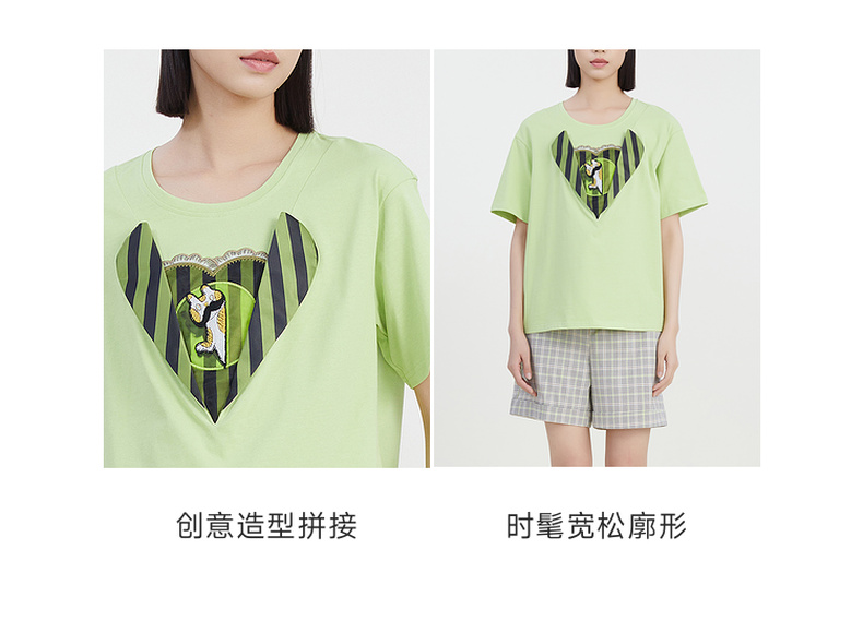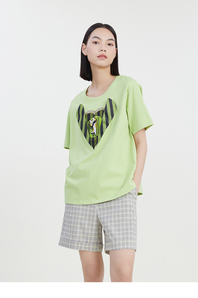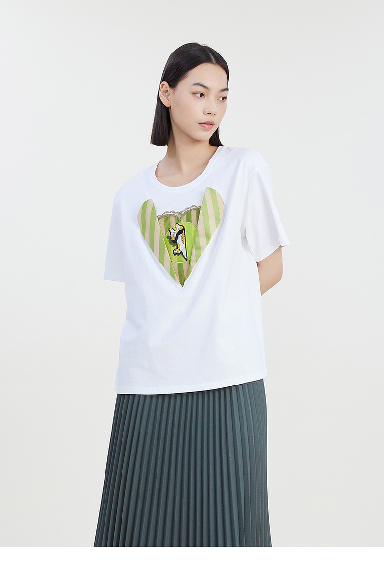 谜底圆领印花T恤女2023夏季新款简约时尚学院风宽松上衣232MT0583