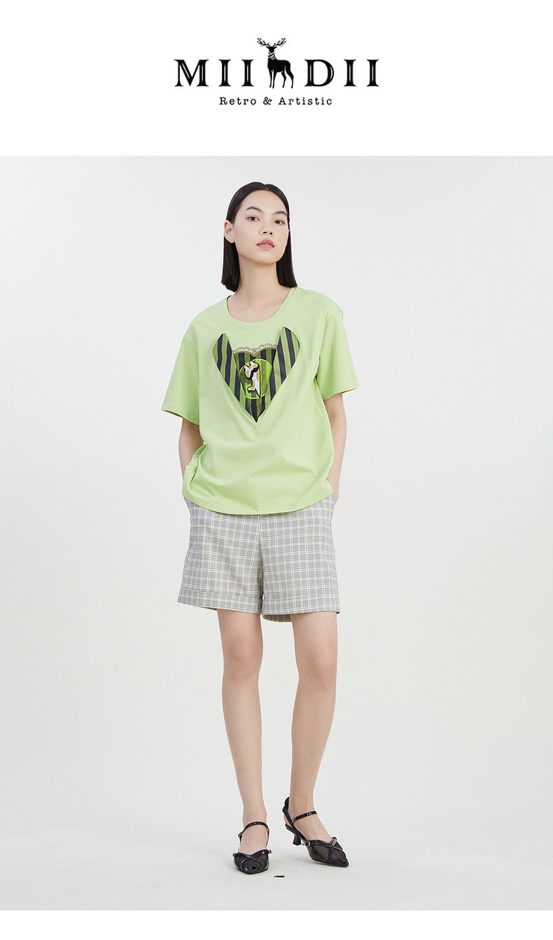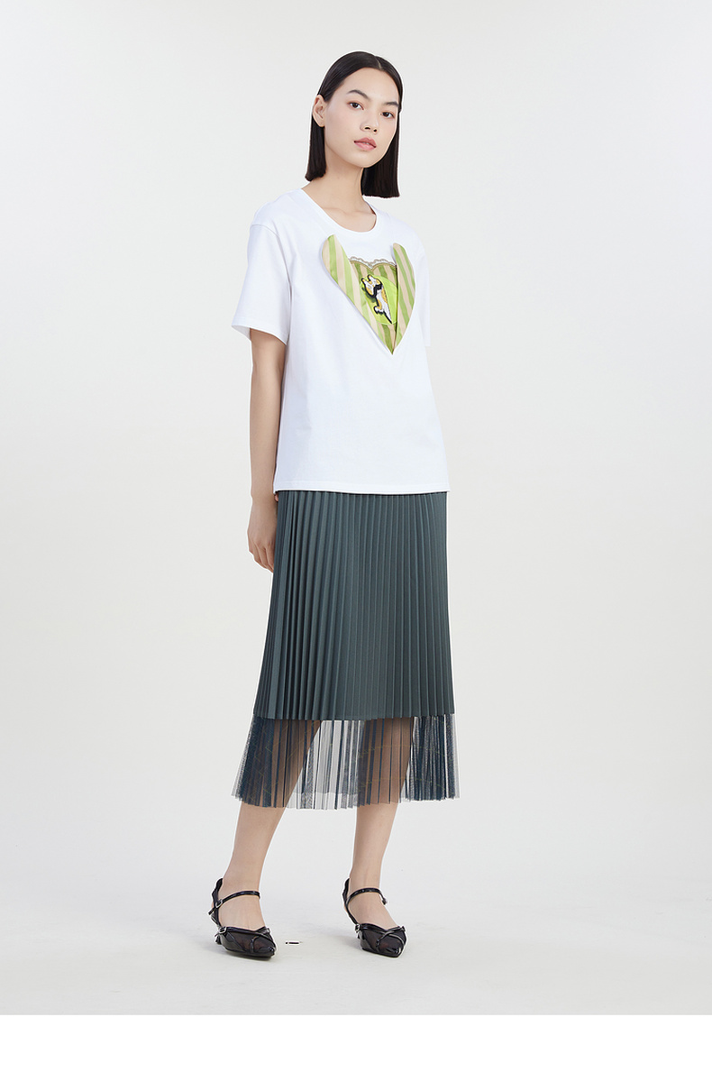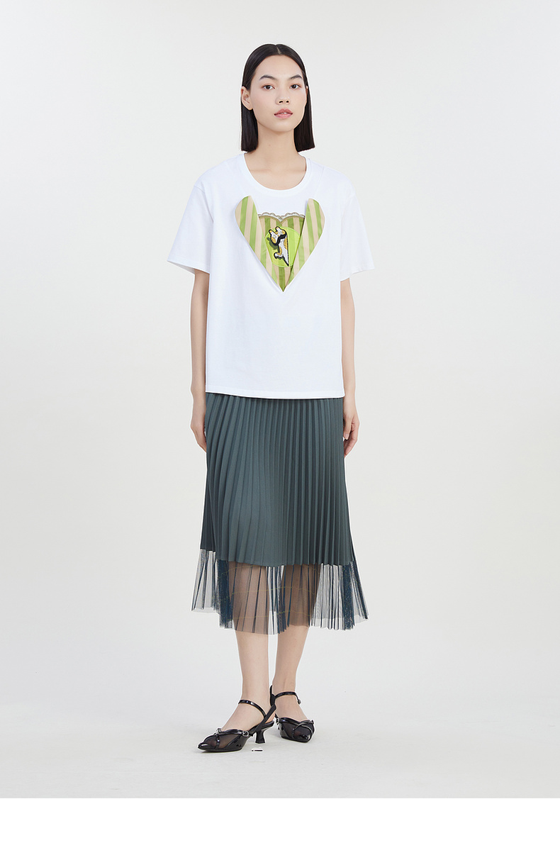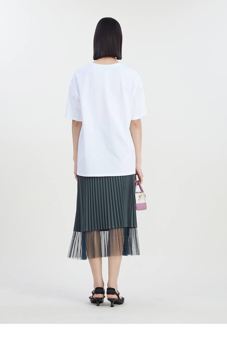 谜底圆领印花T恤女2023夏季新款简约时尚学院风宽松上衣232MT0583