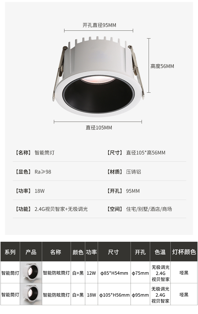 智能高压防眩筒灯