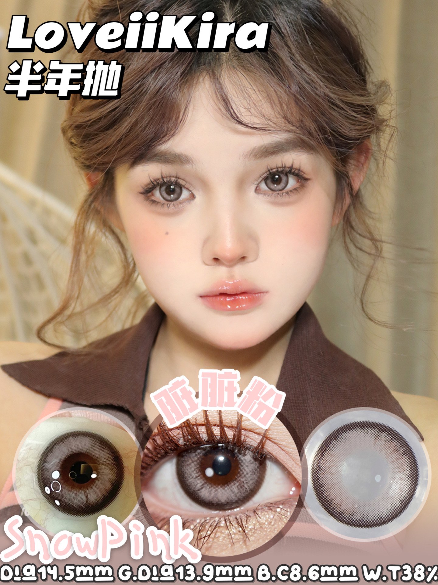 艾吉拉Loveiikira 脏脏粉 半年抛 两片 14.5mm 参考着色 13.9mm 基弧 8.6 含水 38% 韩国进口