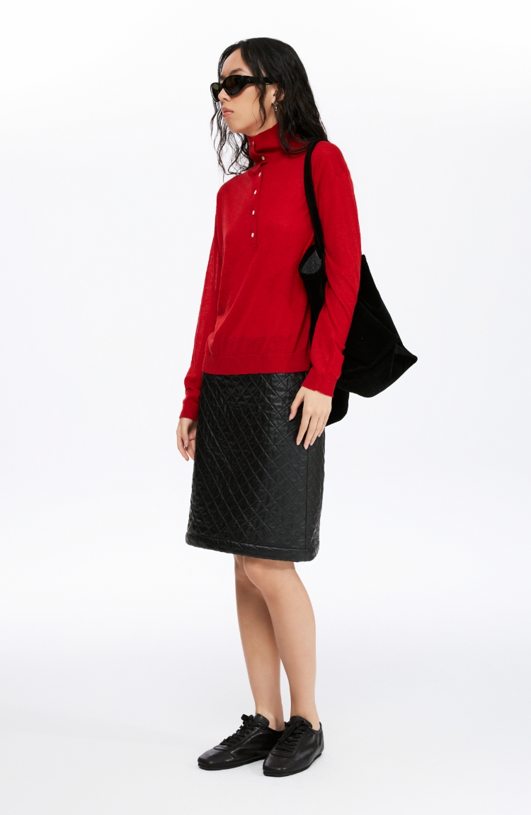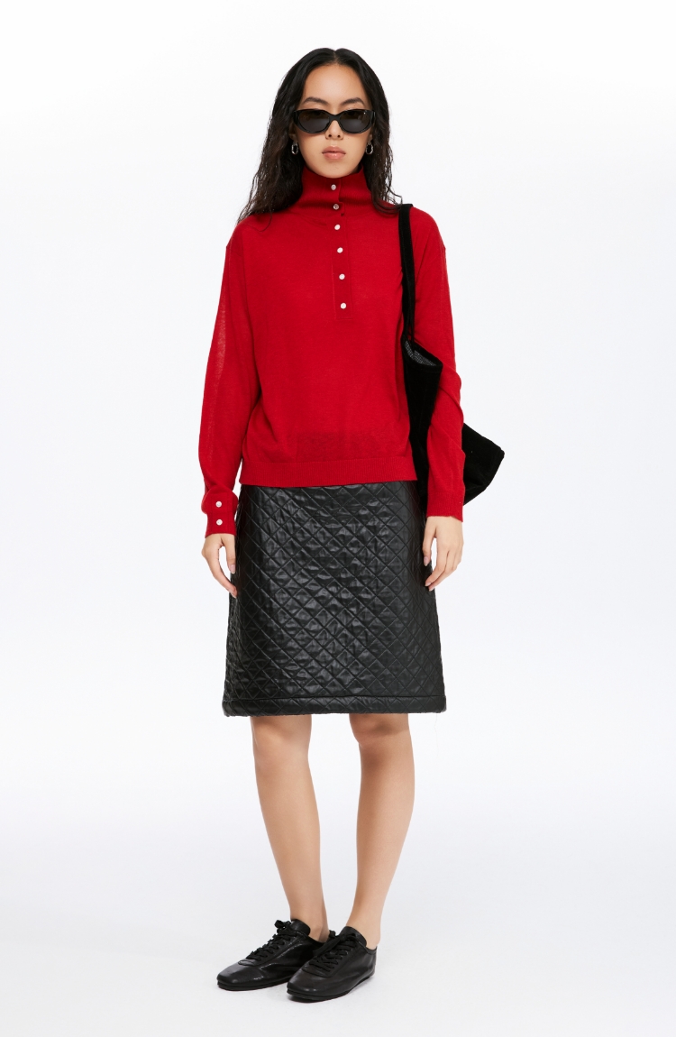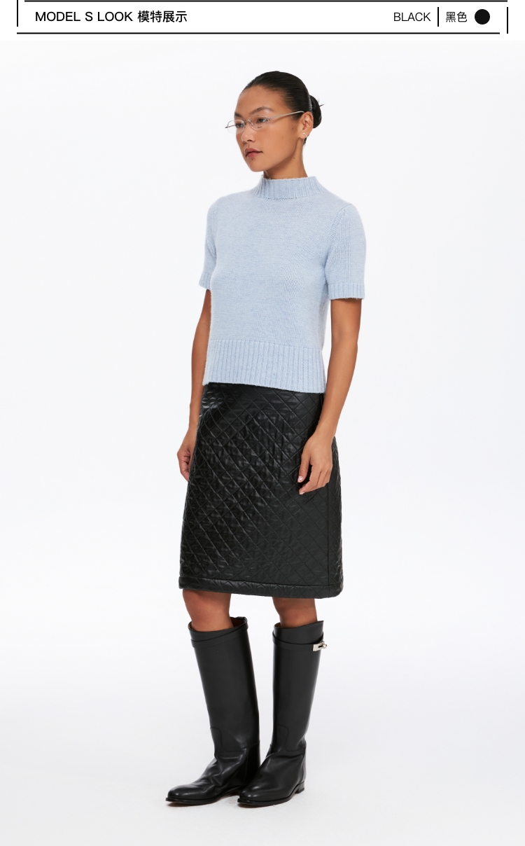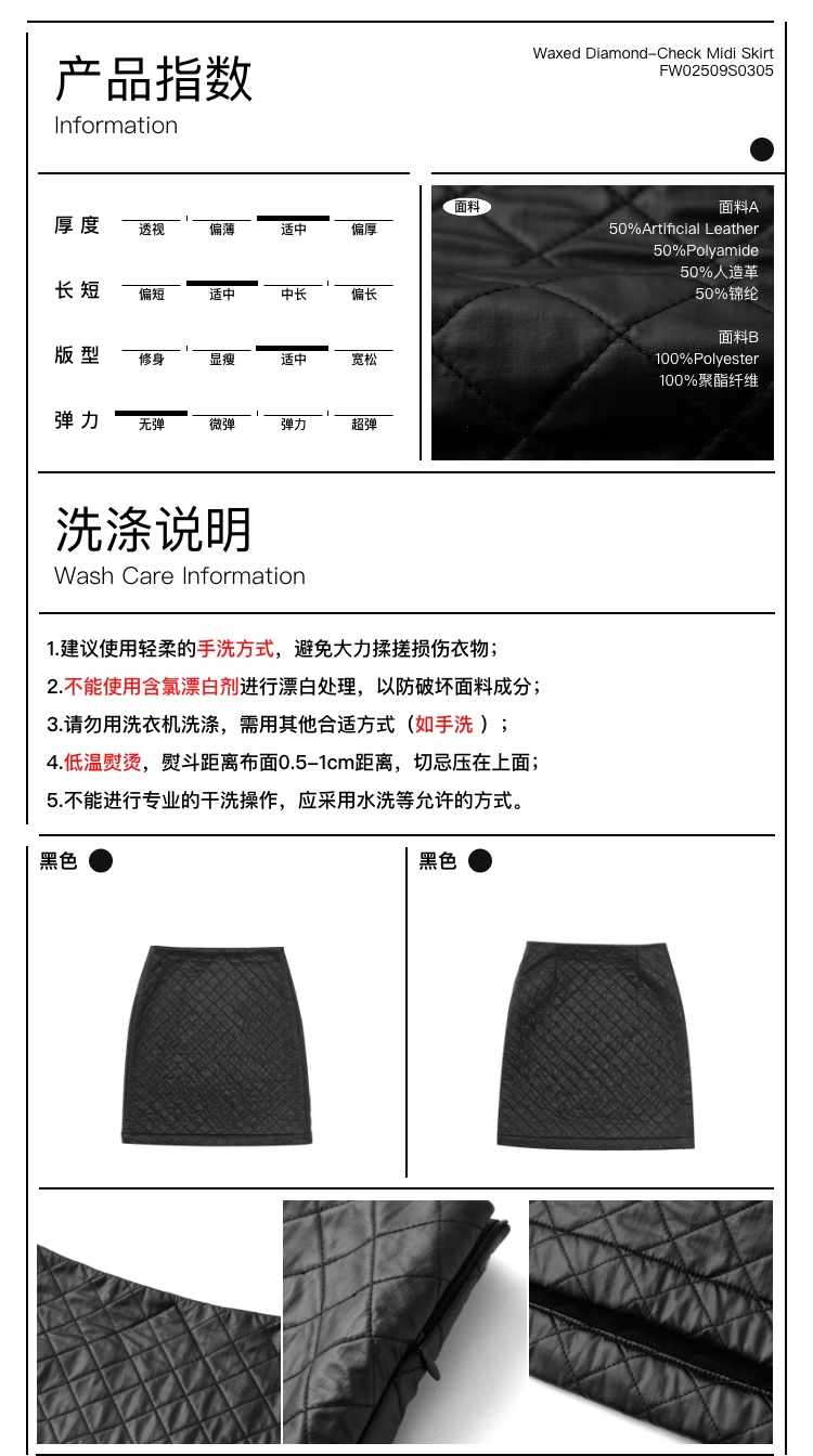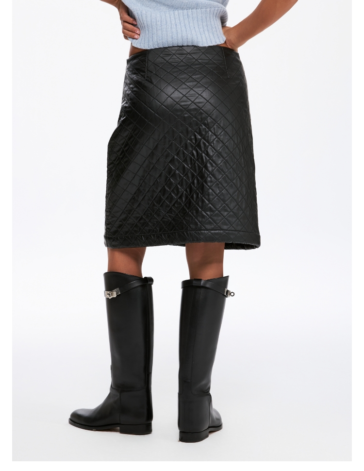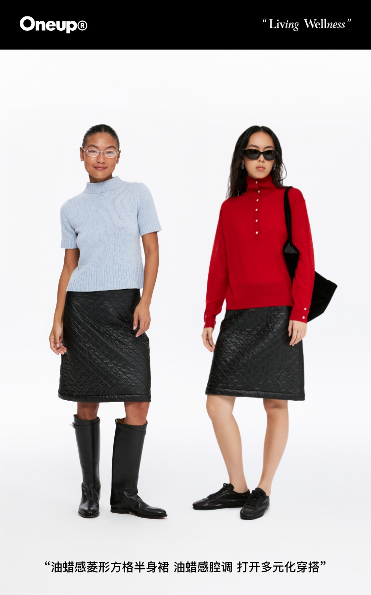 oneup油蜡感菱形方格半身裙