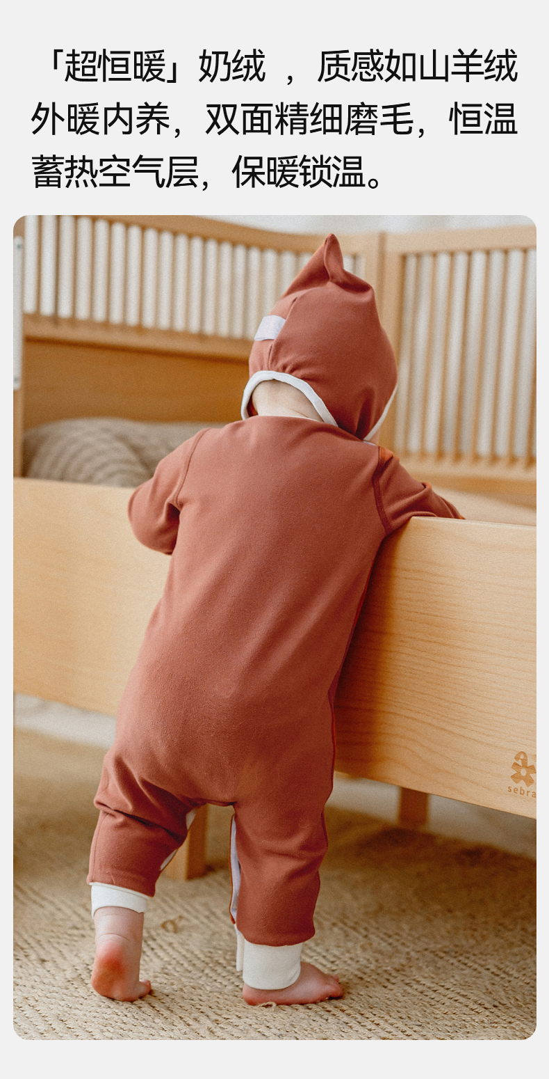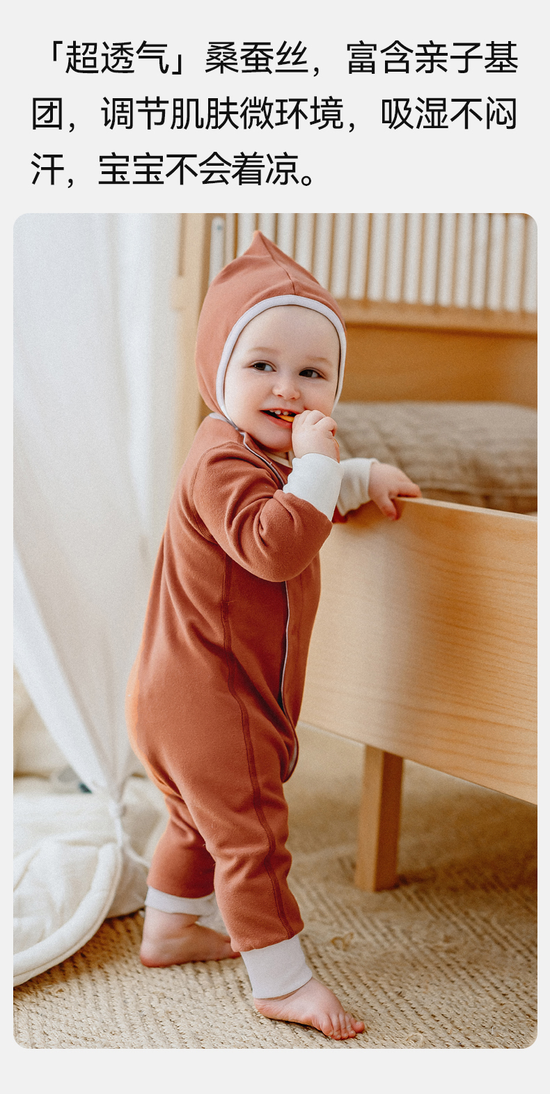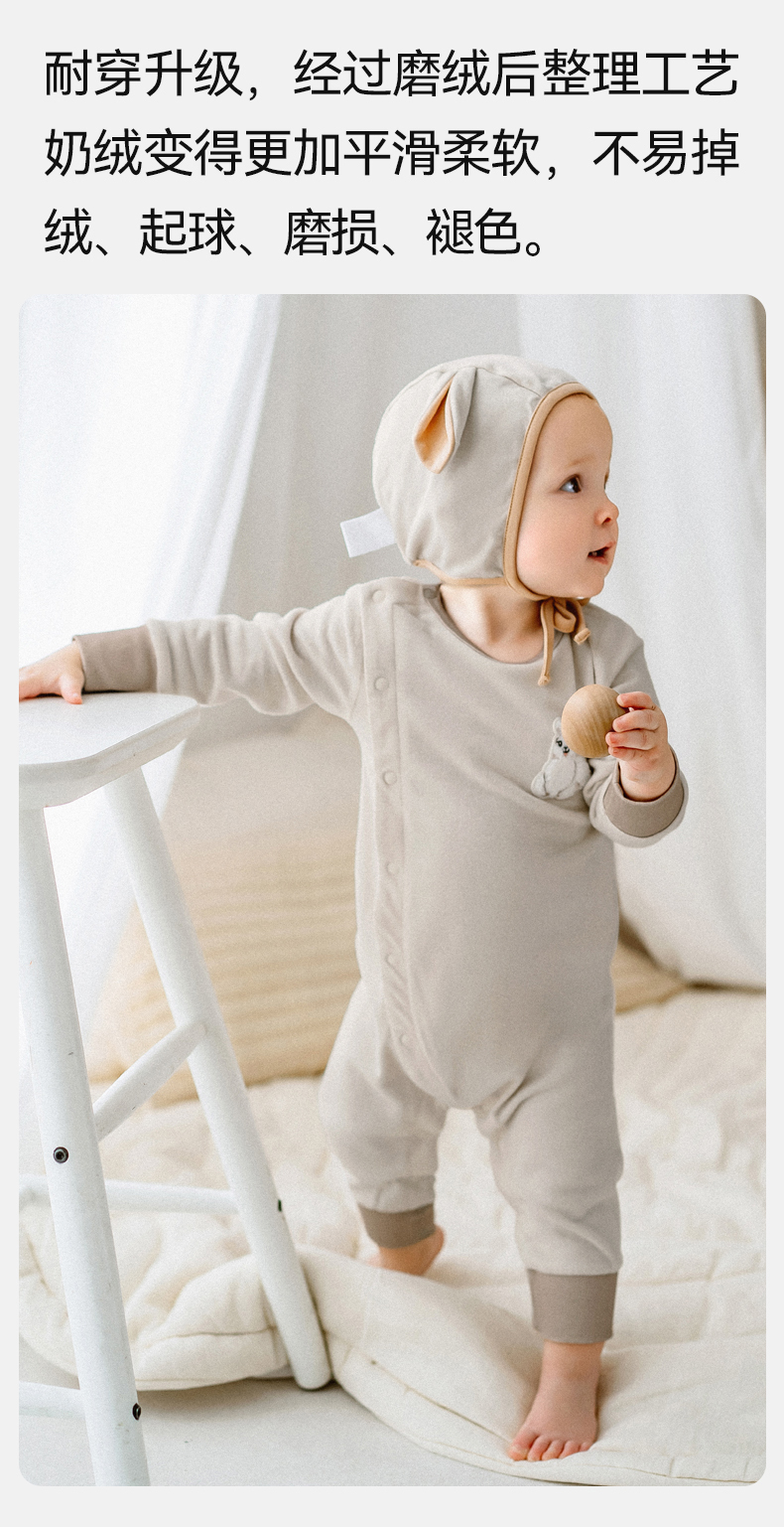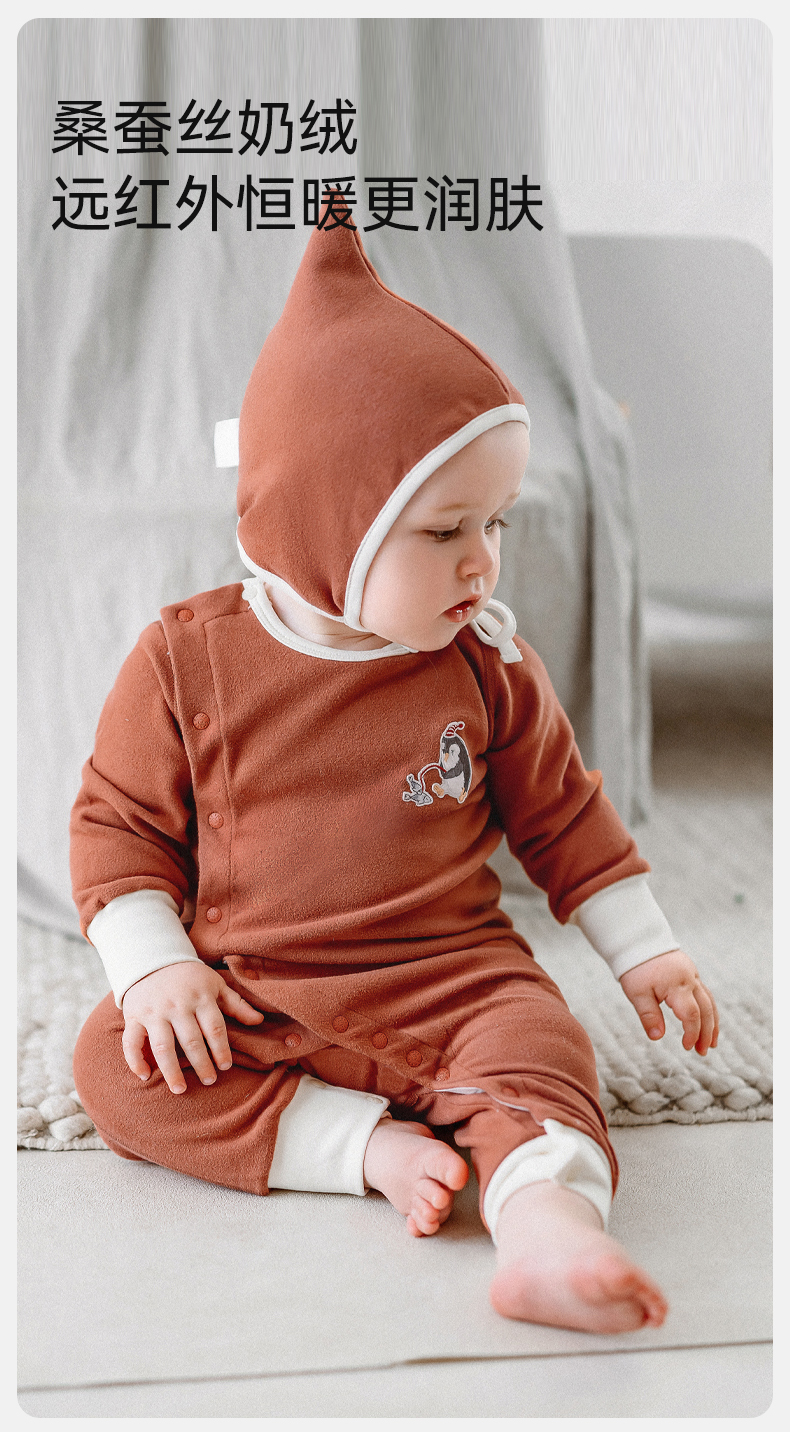 【宝宝服饰】嫚熙桑蚕丝双奶绒婴儿连体衣早秋装冬季男女宝新生儿保暖衣服新款