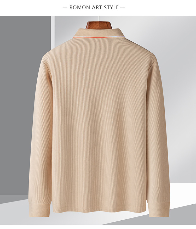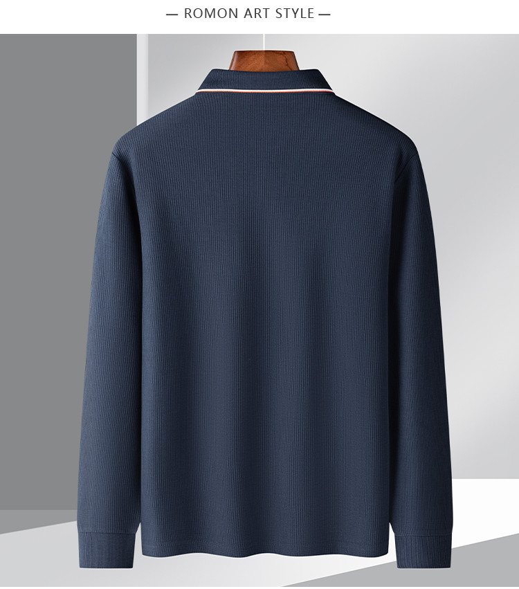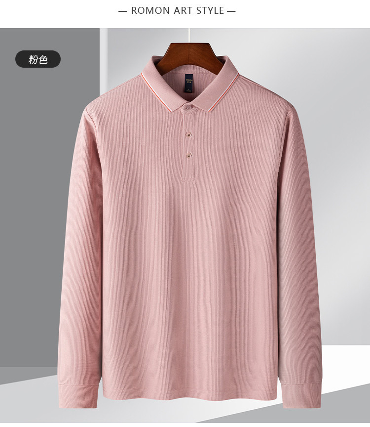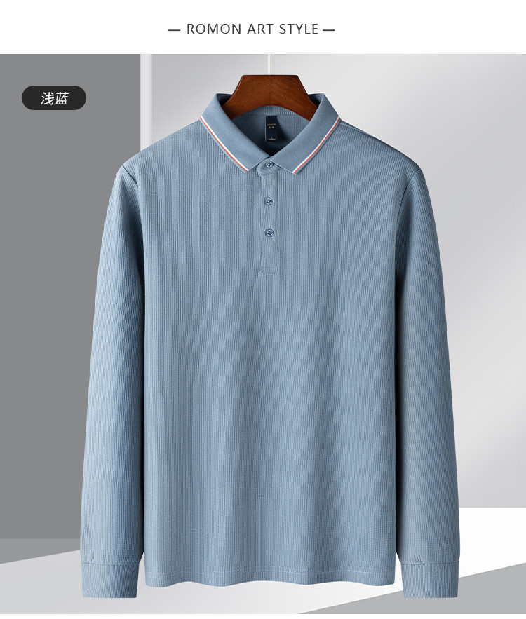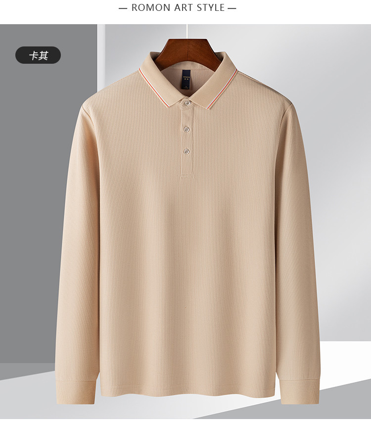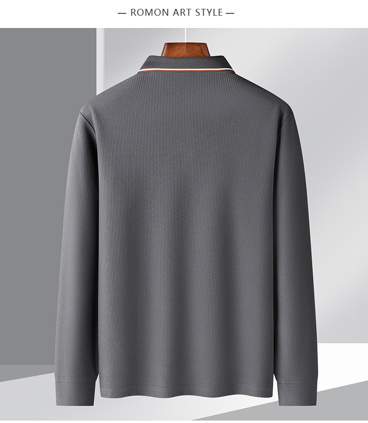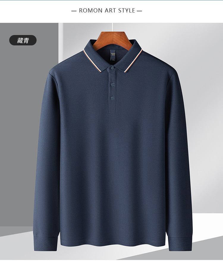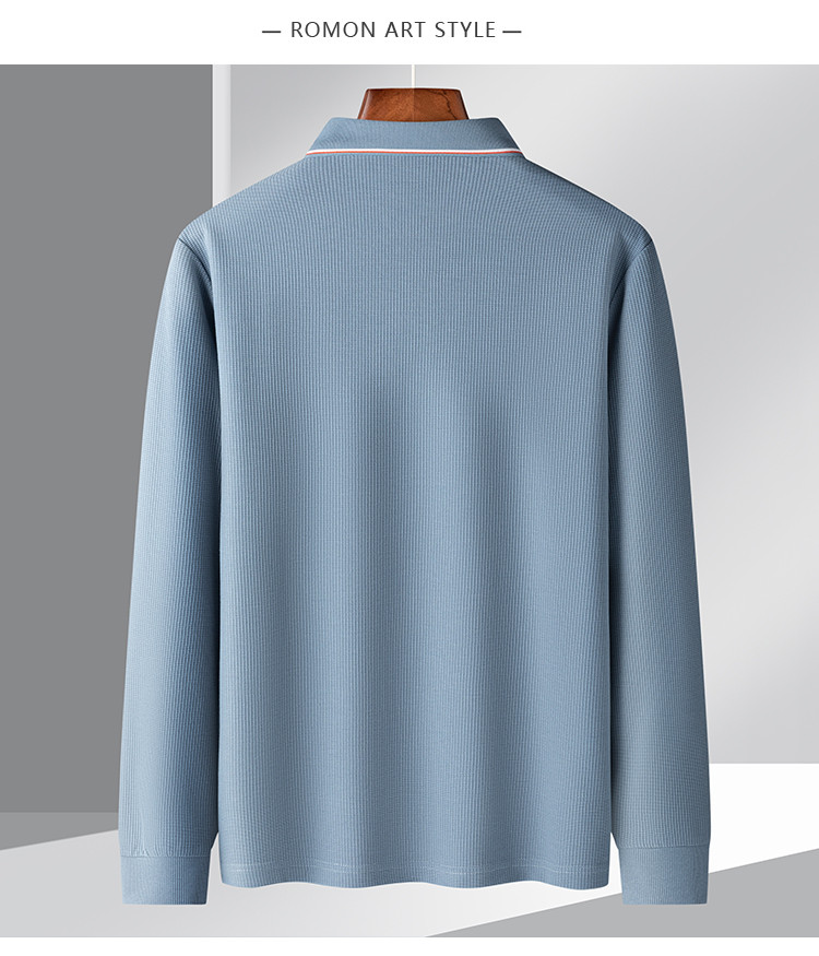 罗蒙男士春秋华夫格含桑蚕丝polo衫男长袖t恤男舒适男士t恤