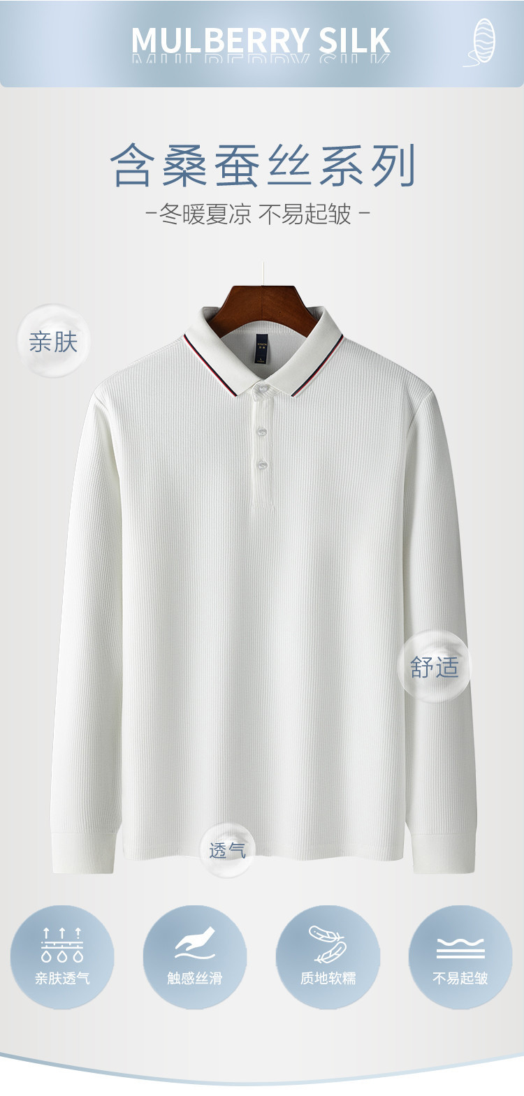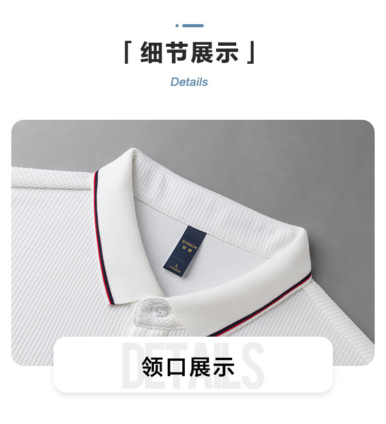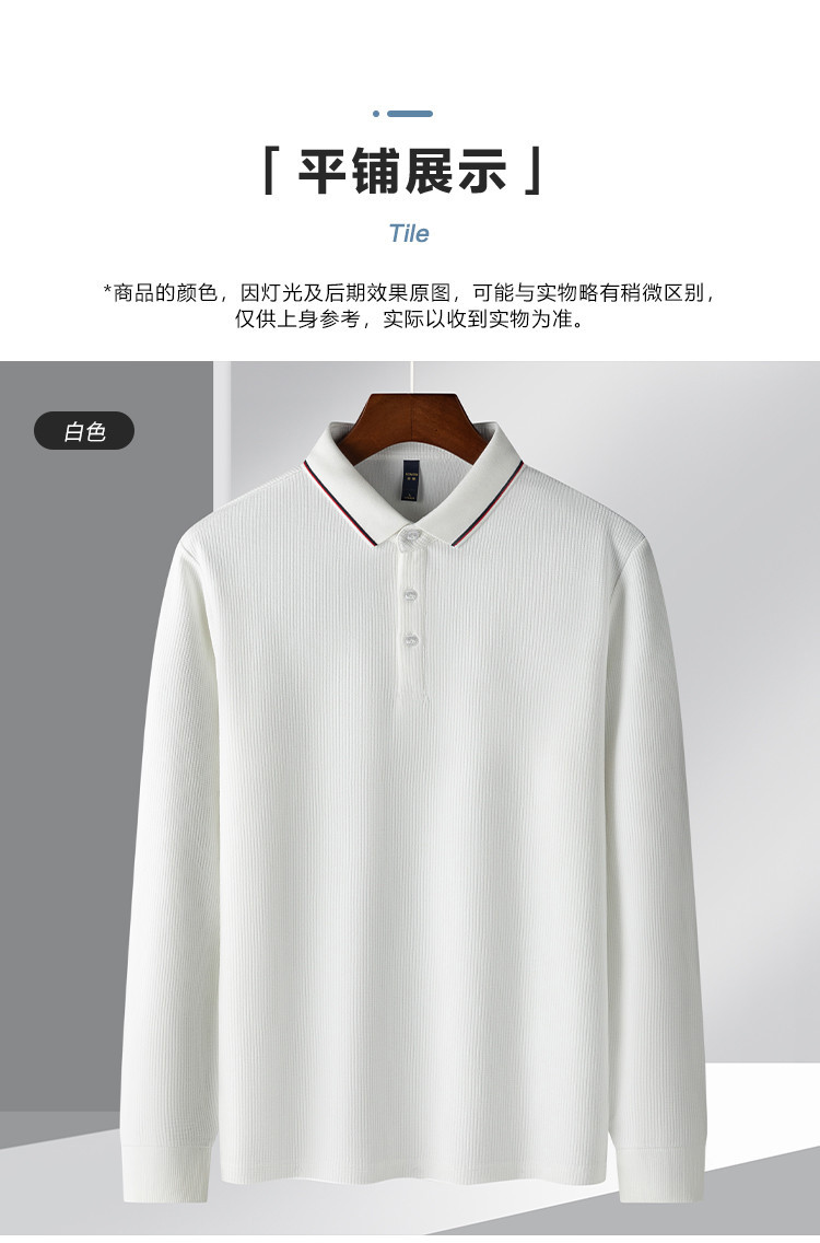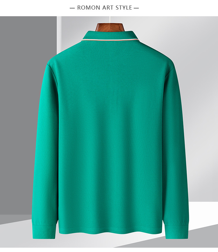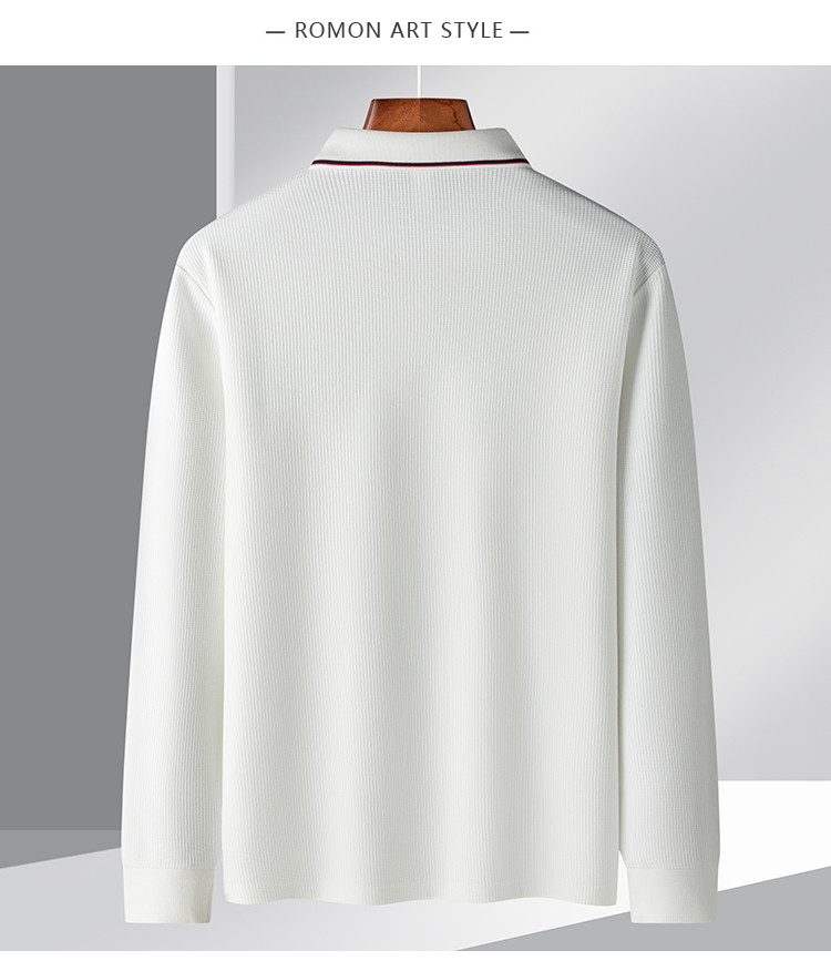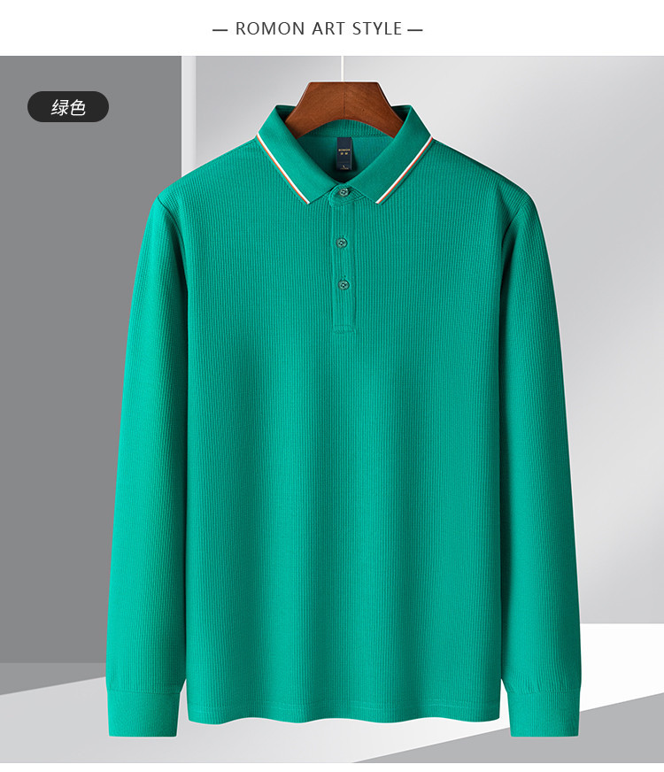 罗蒙男士春秋华夫格含桑蚕丝polo衫男长袖t恤男舒适男士t恤
