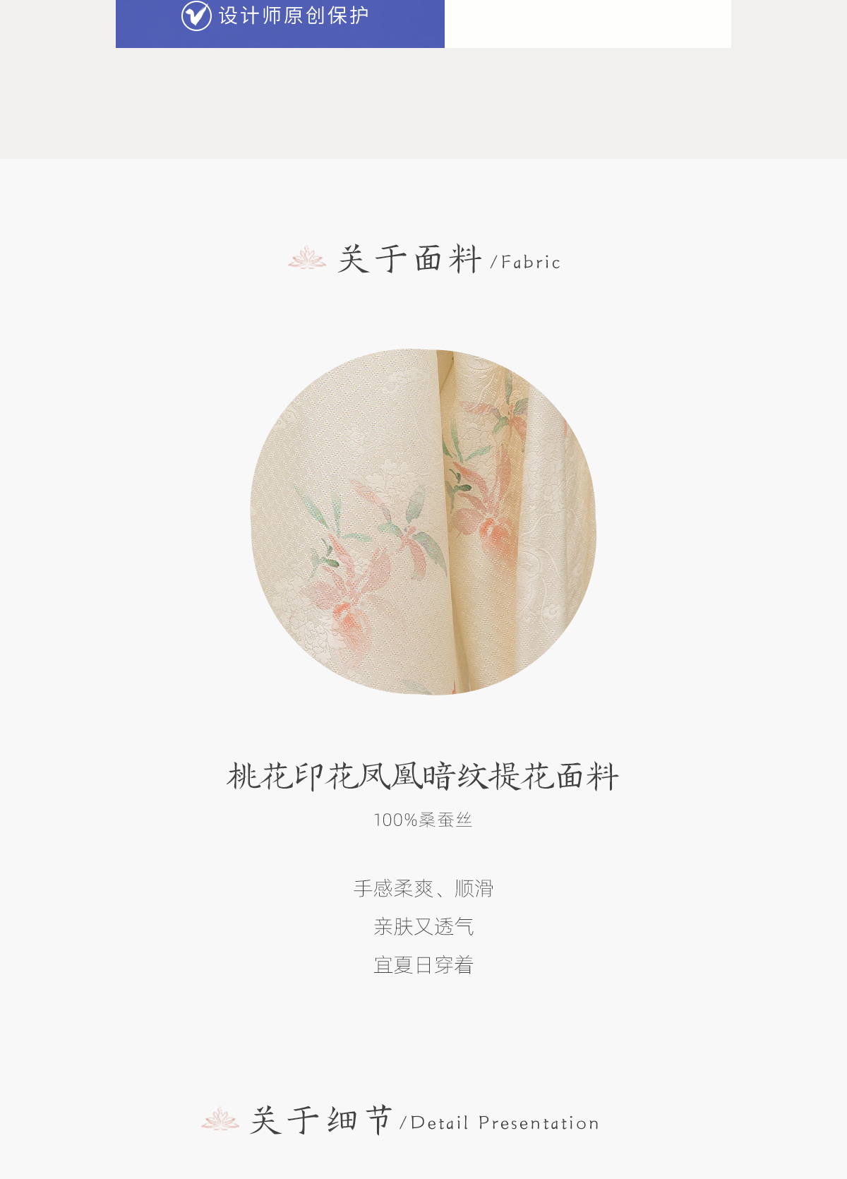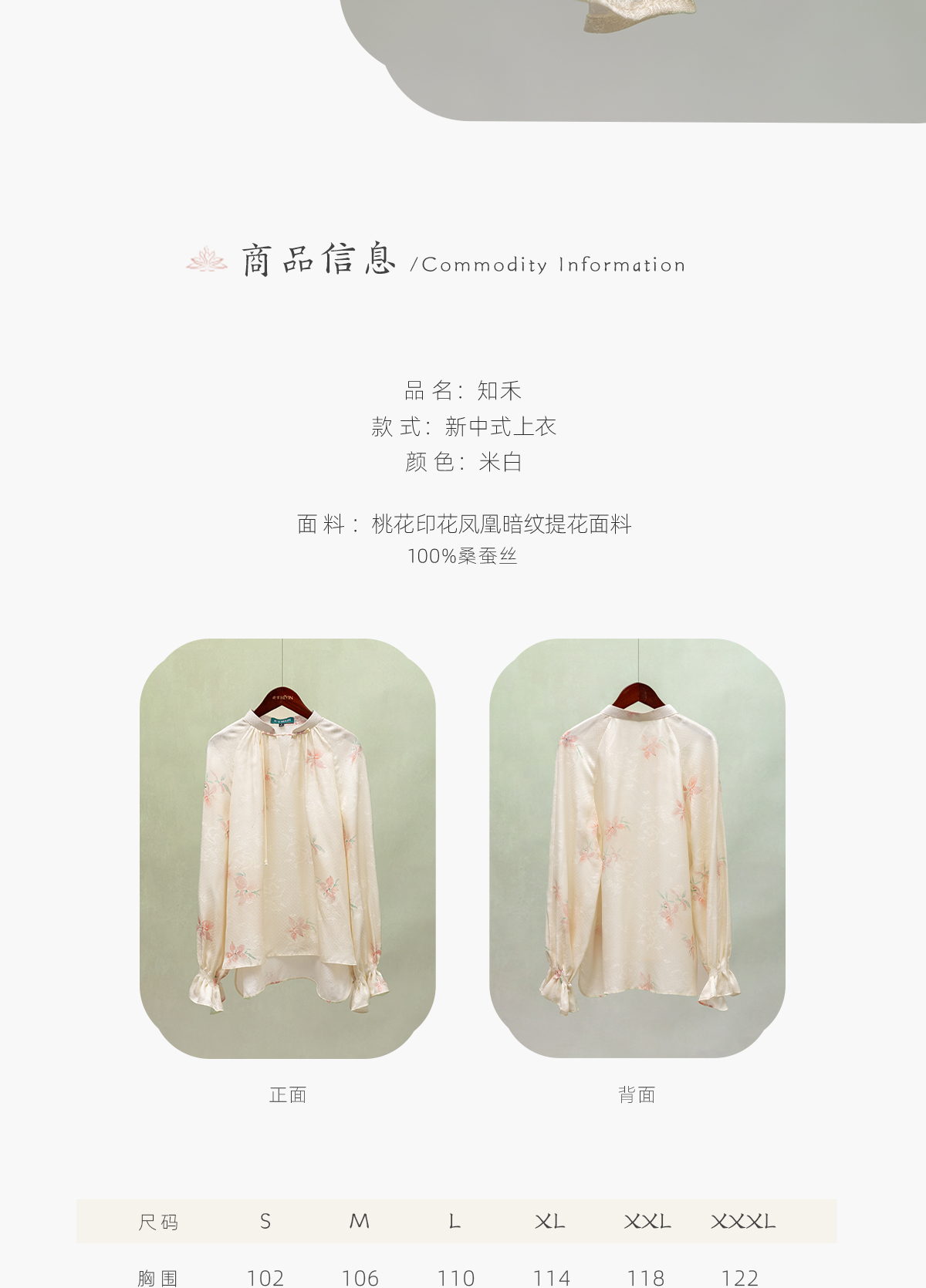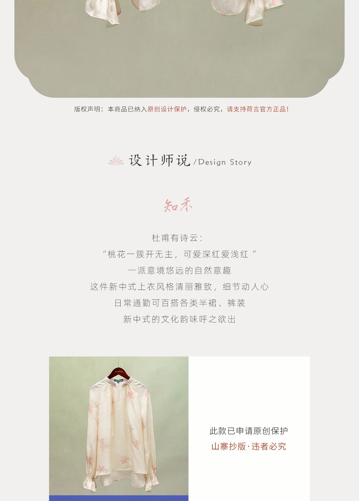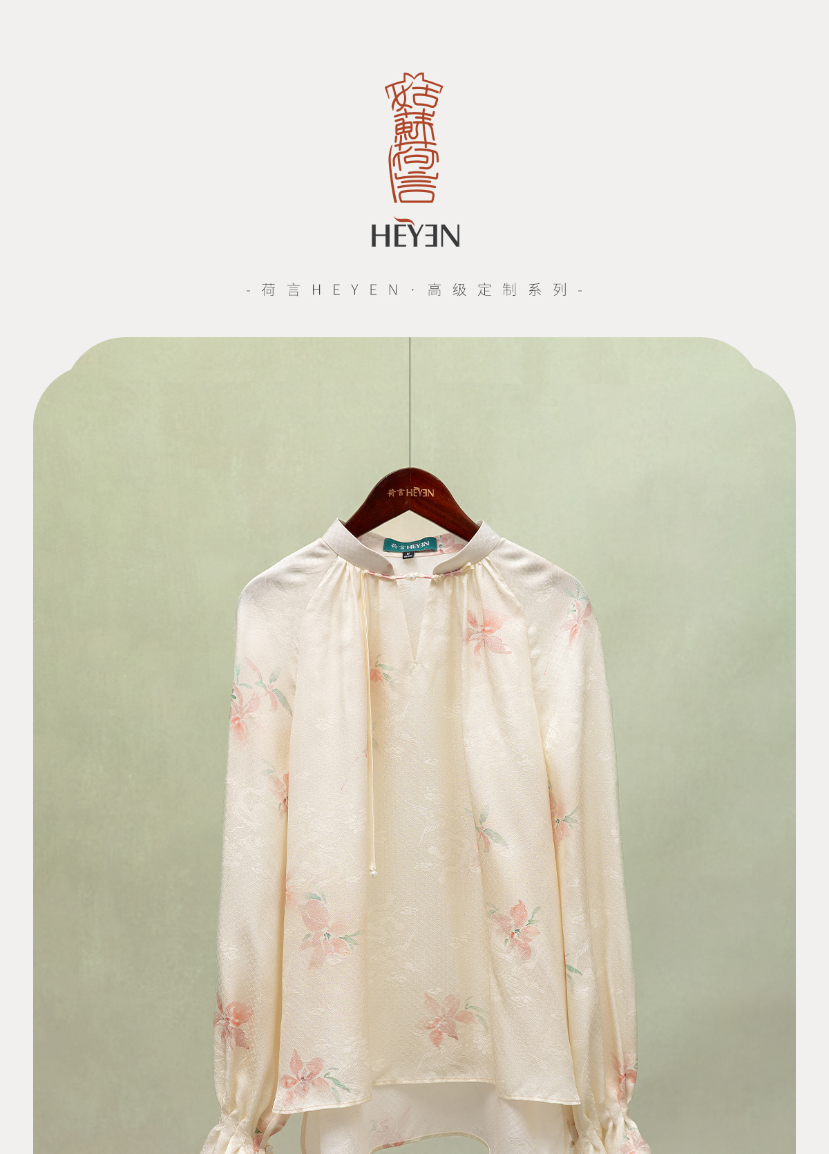 荷言HEYEN 知禾 桃花印花凤凰暗纹提花真丝上衣清凉雅致高级定制