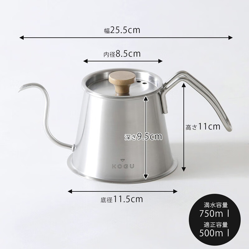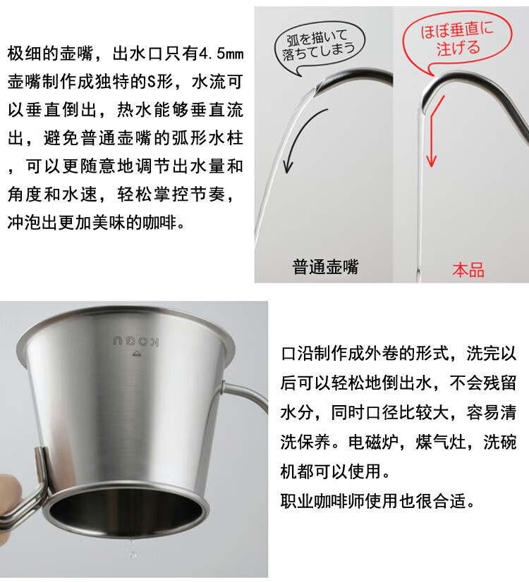 【清仓特惠6折,仅一个】下村KO不锈钢手冲咖啡壶滴滤式细口长嘴茶壶挂耳烧水壶 带盖款咖啡壶