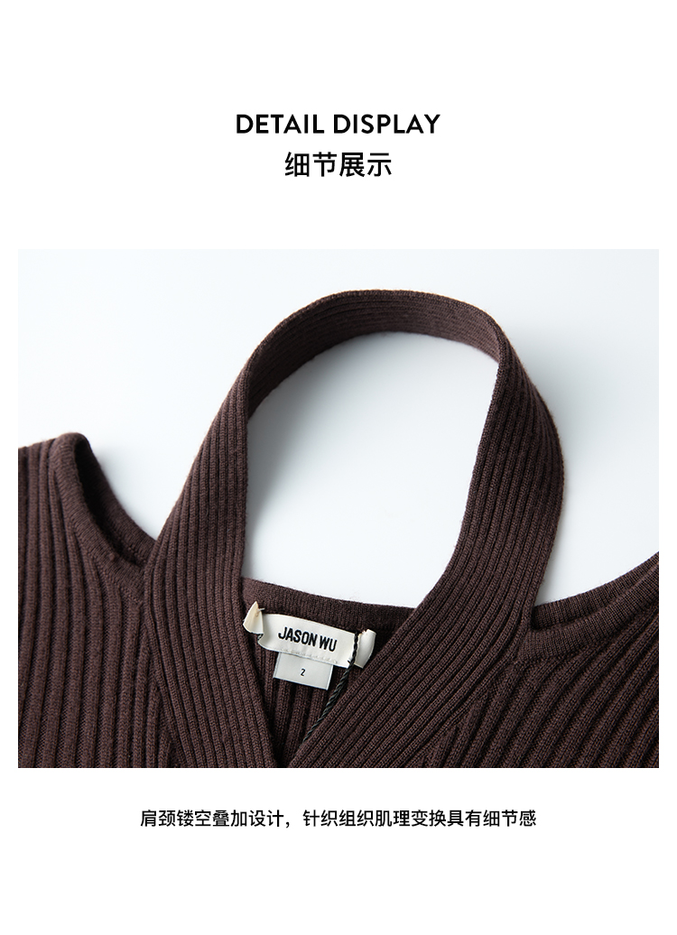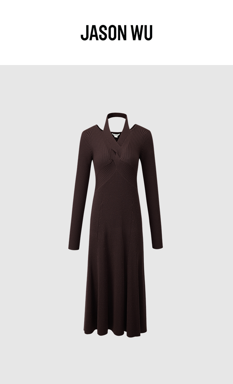 【JASON WU】新款挂脖扭结羊毛针织V领裙子长裙连衣裙