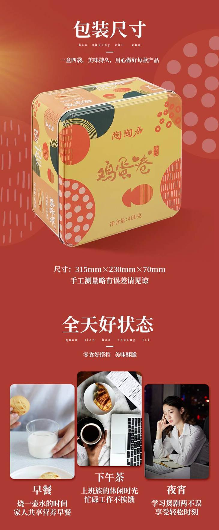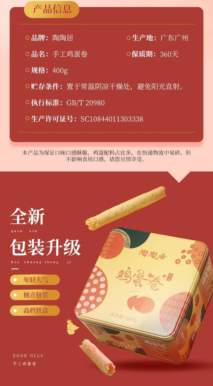 陶陶居手工鸡蛋卷 100克*4(新旧包装随机发货)