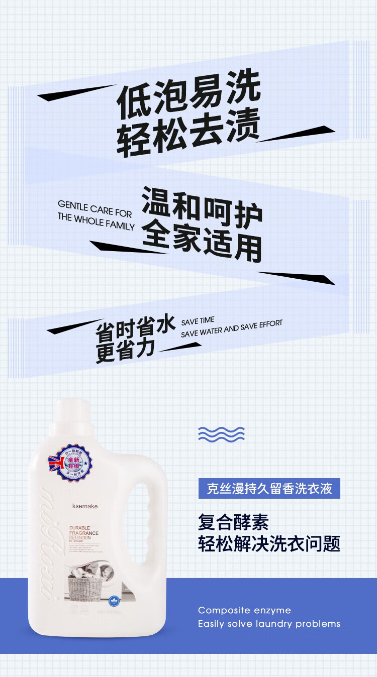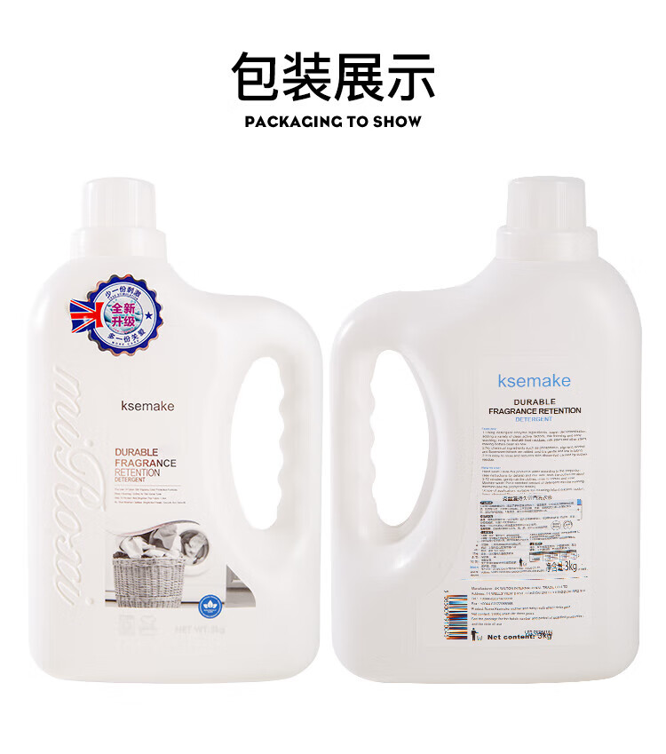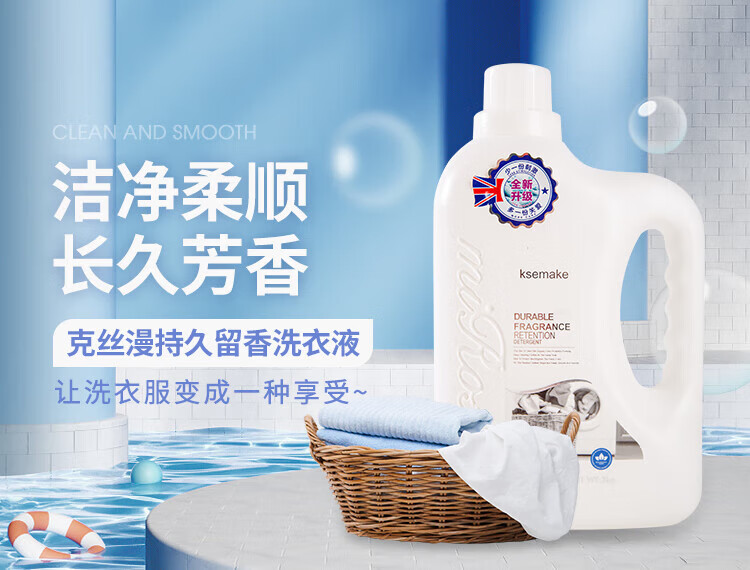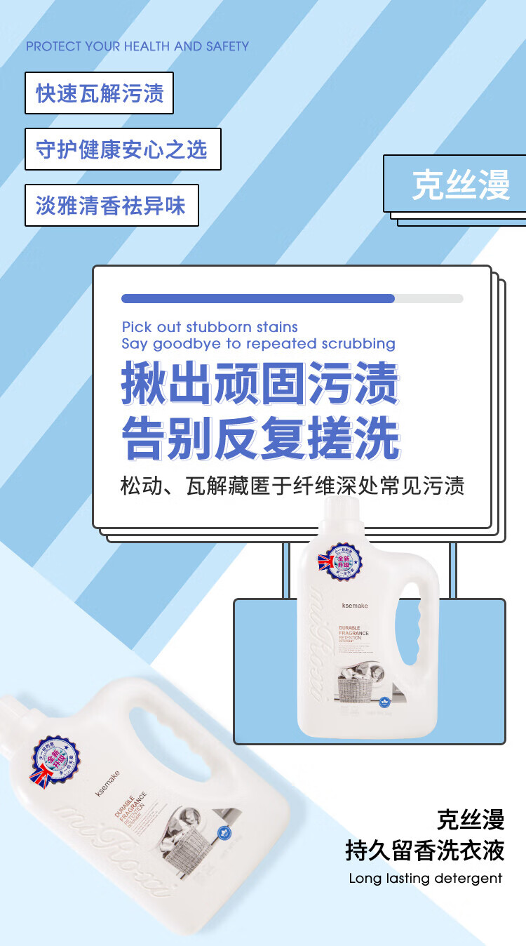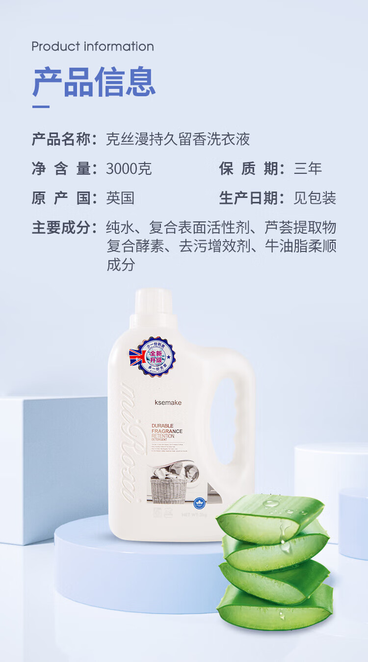 克丝漫持久留香洗衣液去污温和去渍柔顺护衣 3L/桶