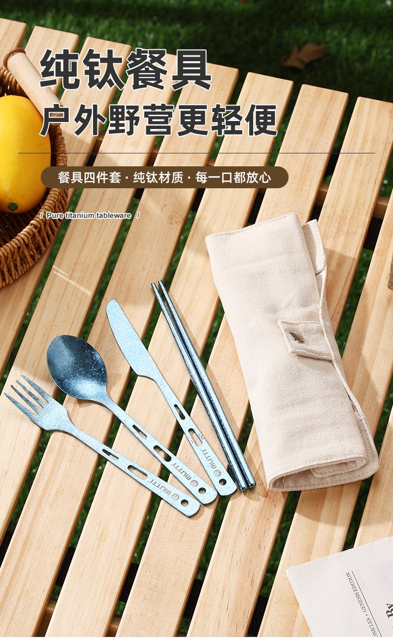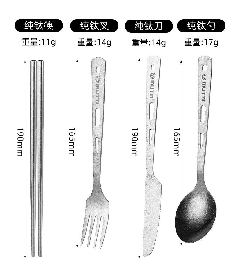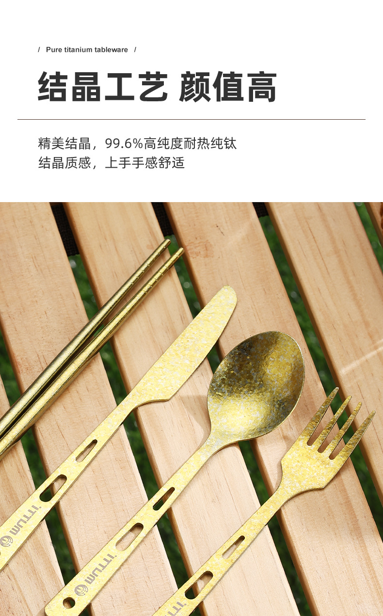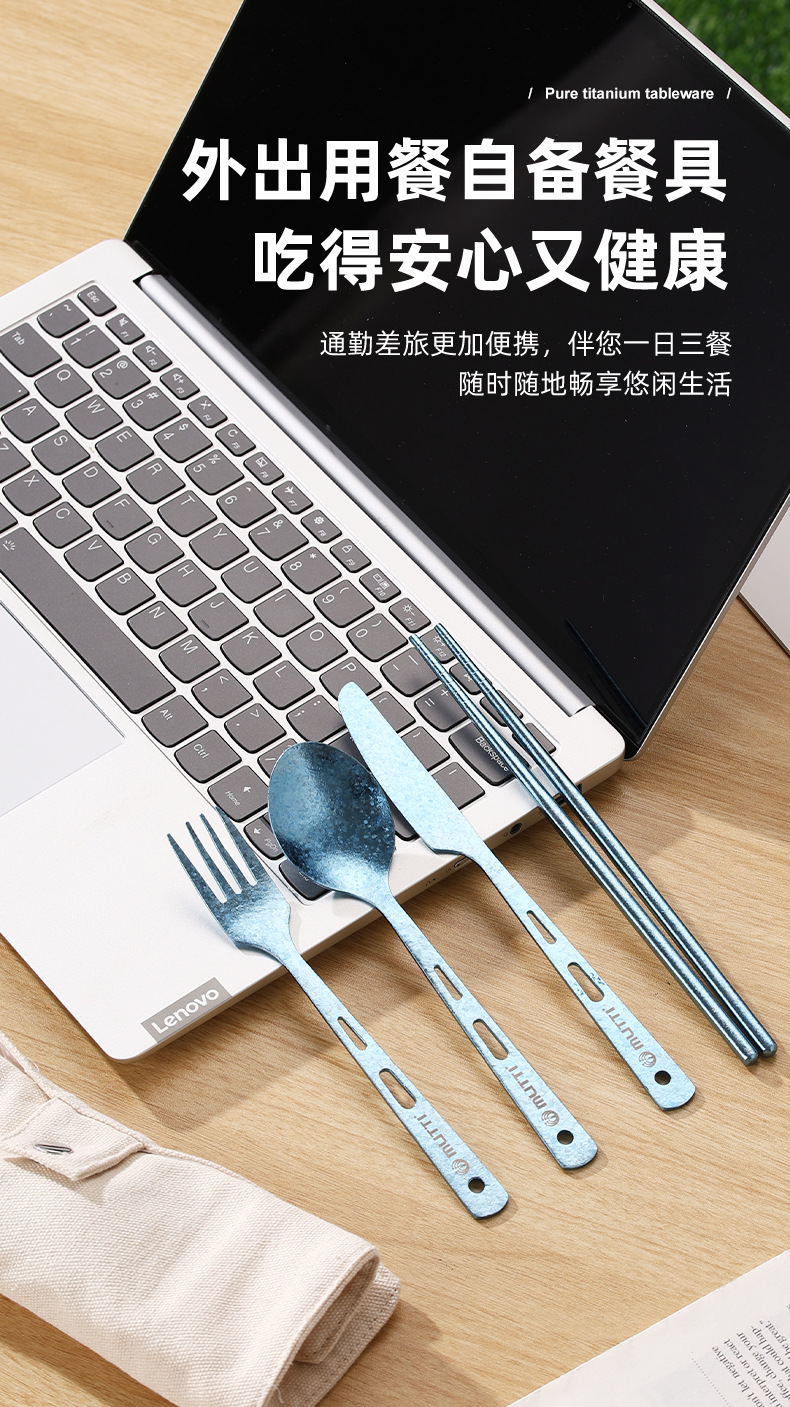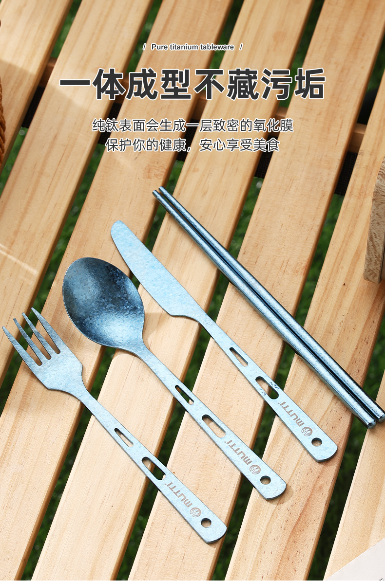【纯钛便携餐具】户外纯钛刀叉勺筷子家用砂光收纳盒野营便携轻便旅游钛餐具批发