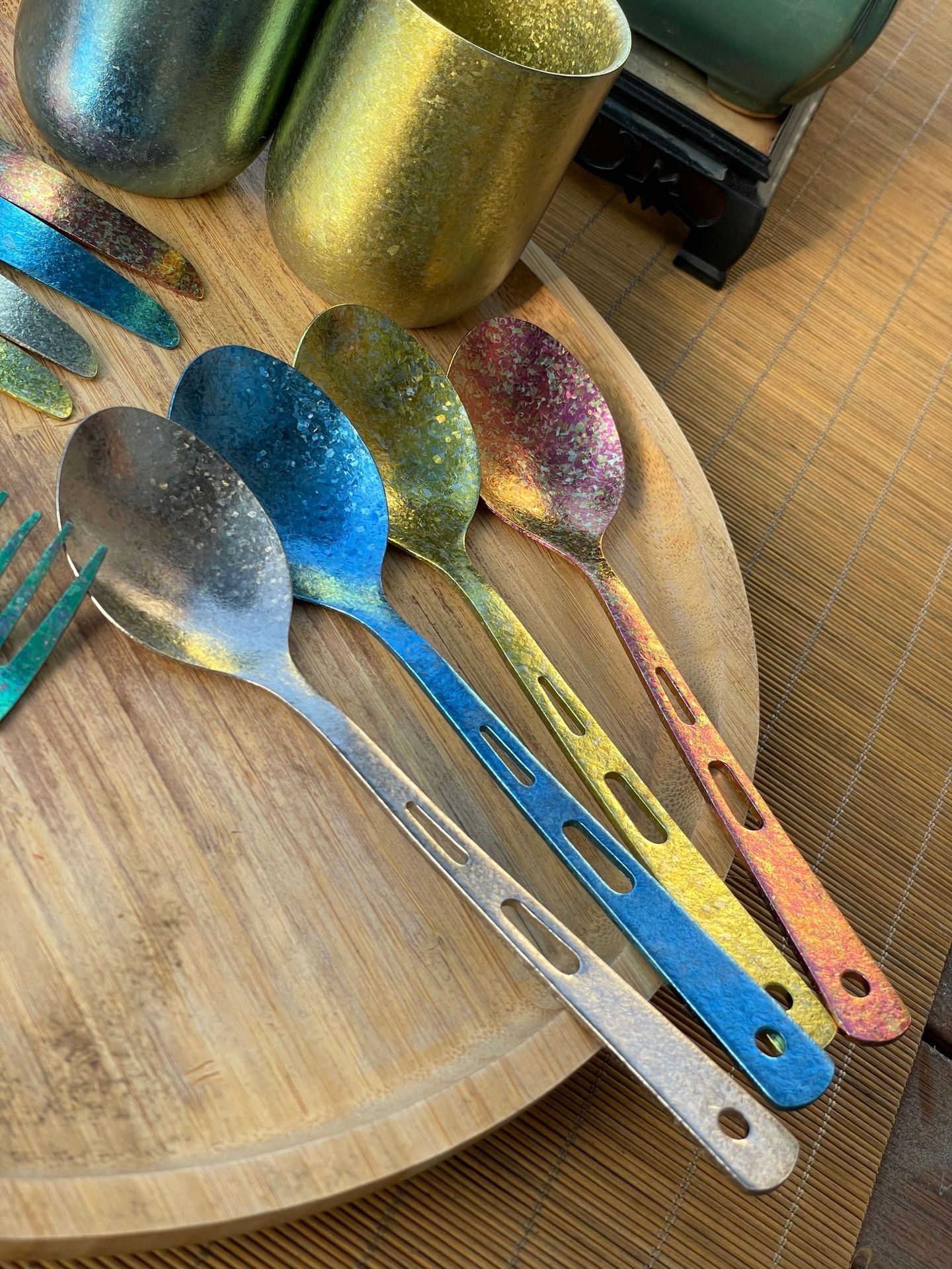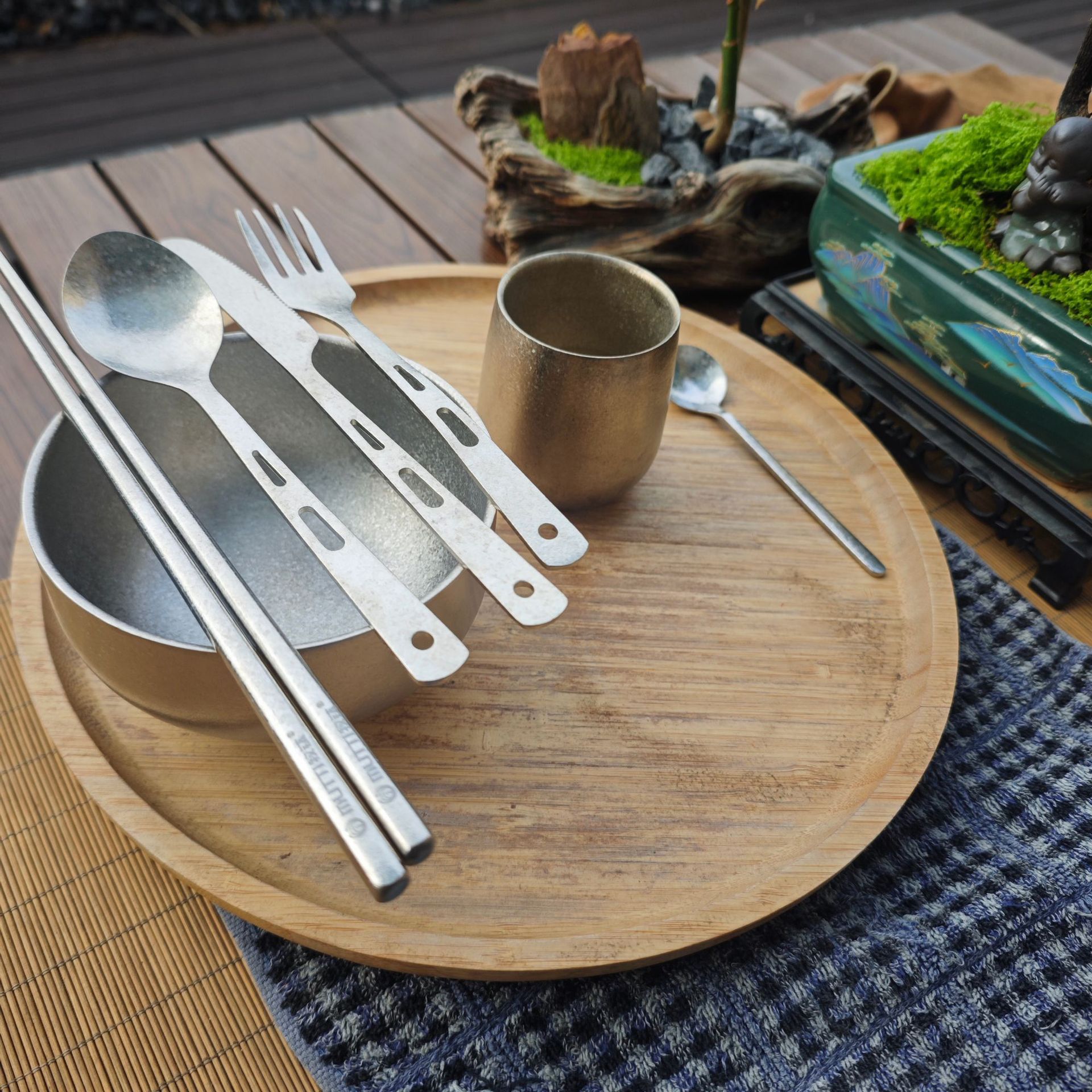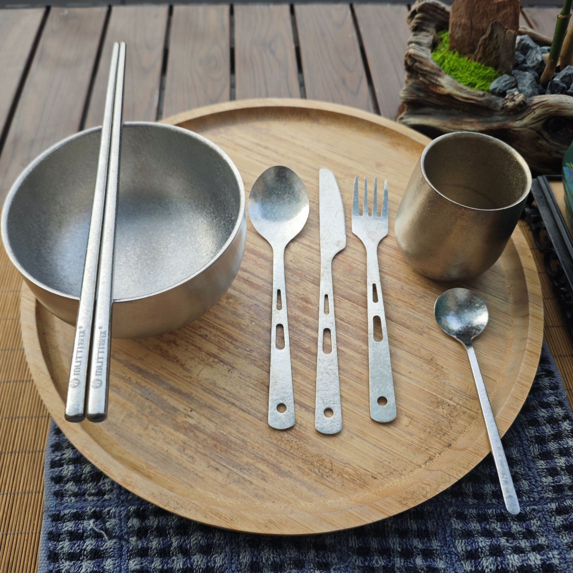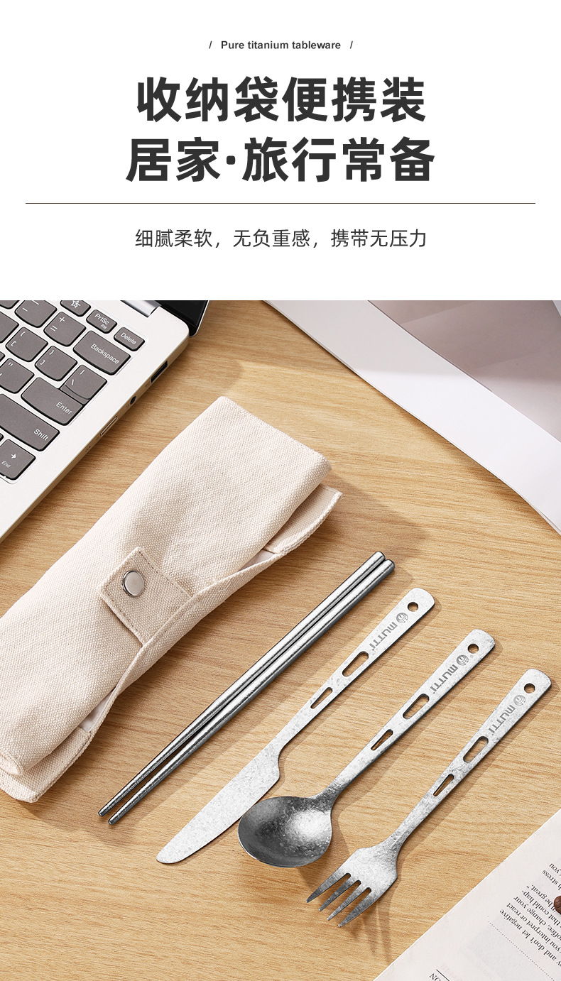 【纯钛便携餐具】户外纯钛刀叉勺筷子家用砂光收纳盒野营便携轻便旅游钛餐具批发