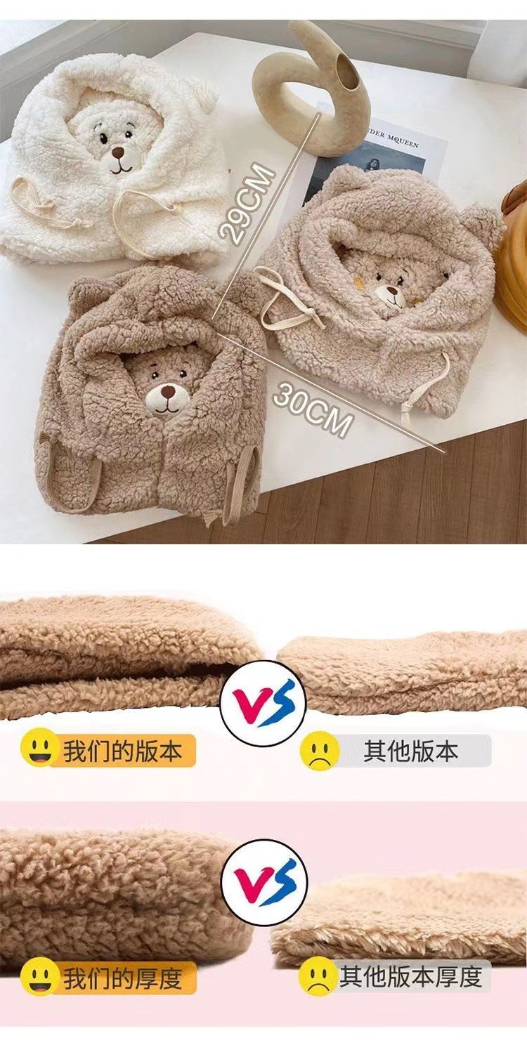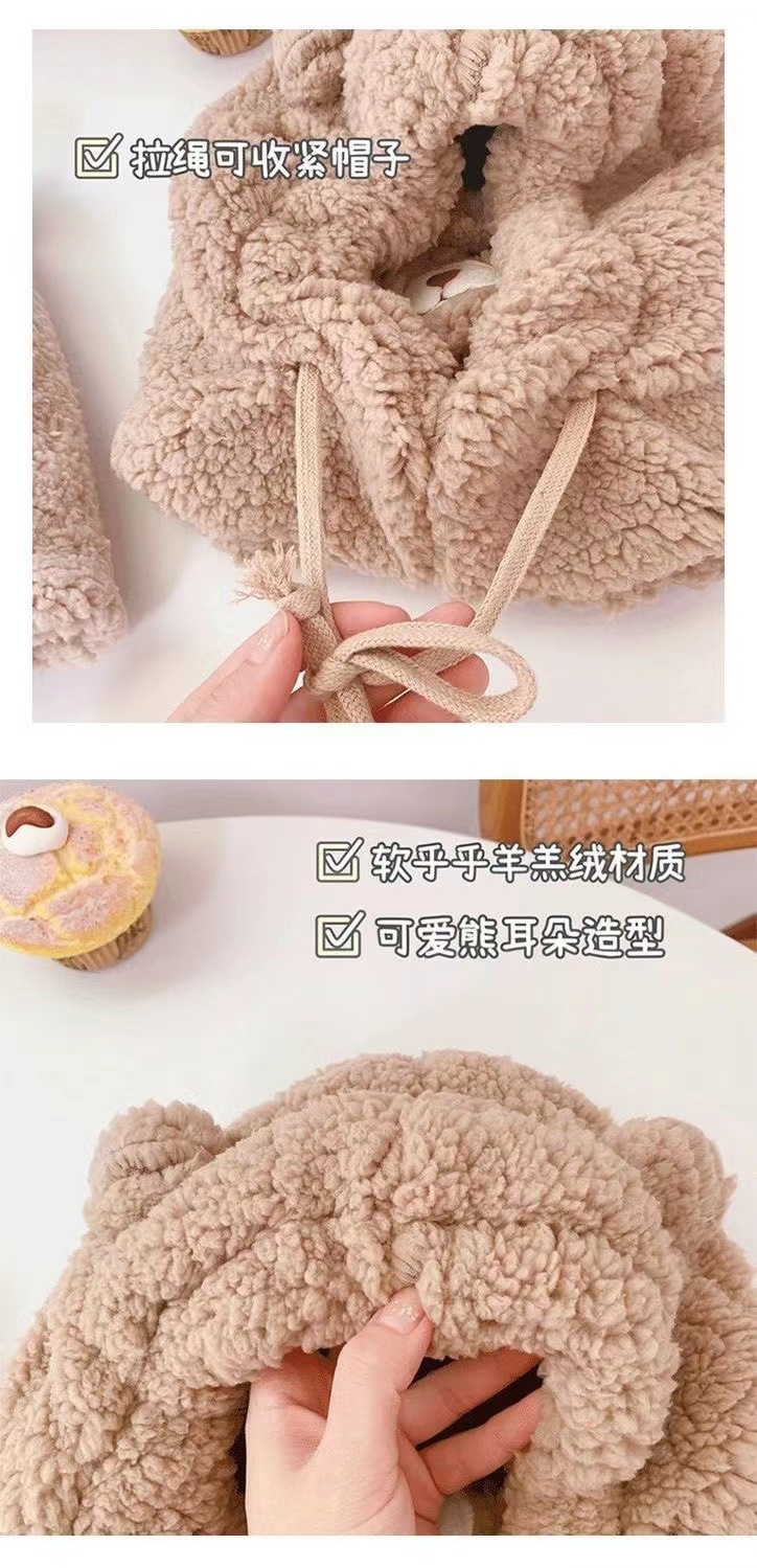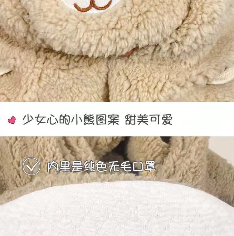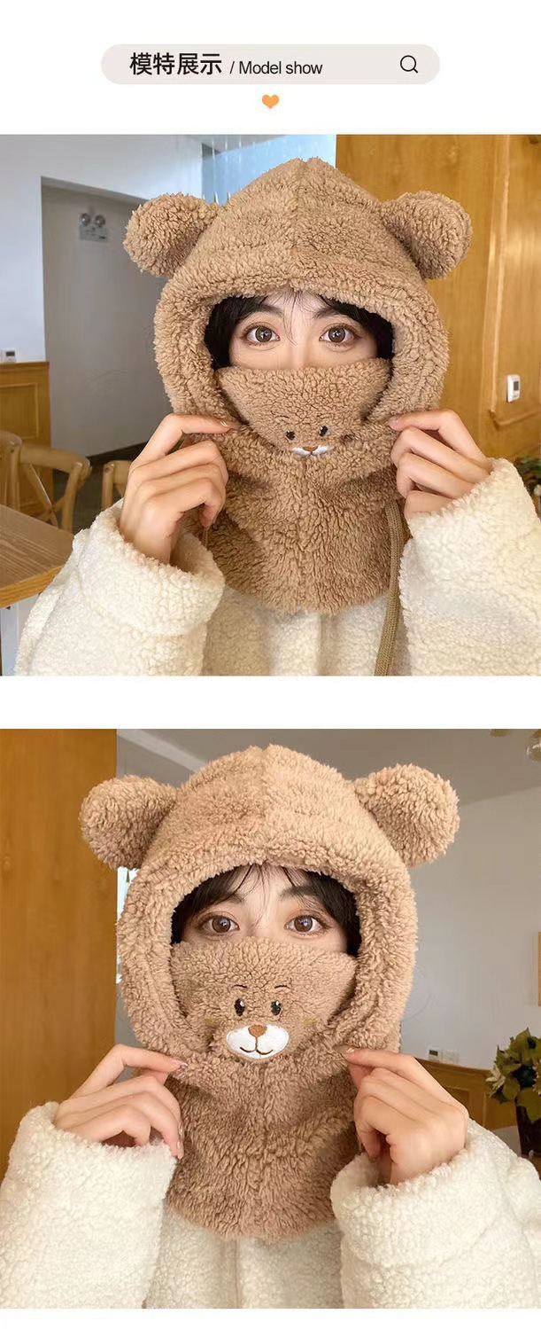 【小熊图案,甜美可爱!】小熊帽口罩帽子围巾一体,冬天女冬天骑车防寒保暖帽子,女秋冬时尚帽lm