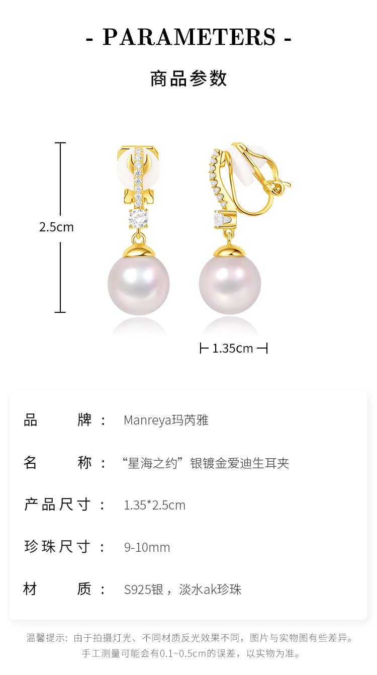 Manreya玛芮雅“星海之约”银镀金爱迪生耳夹无耳洞耳饰