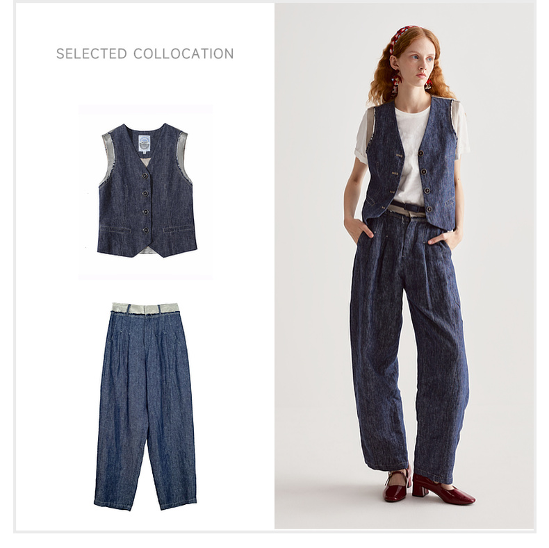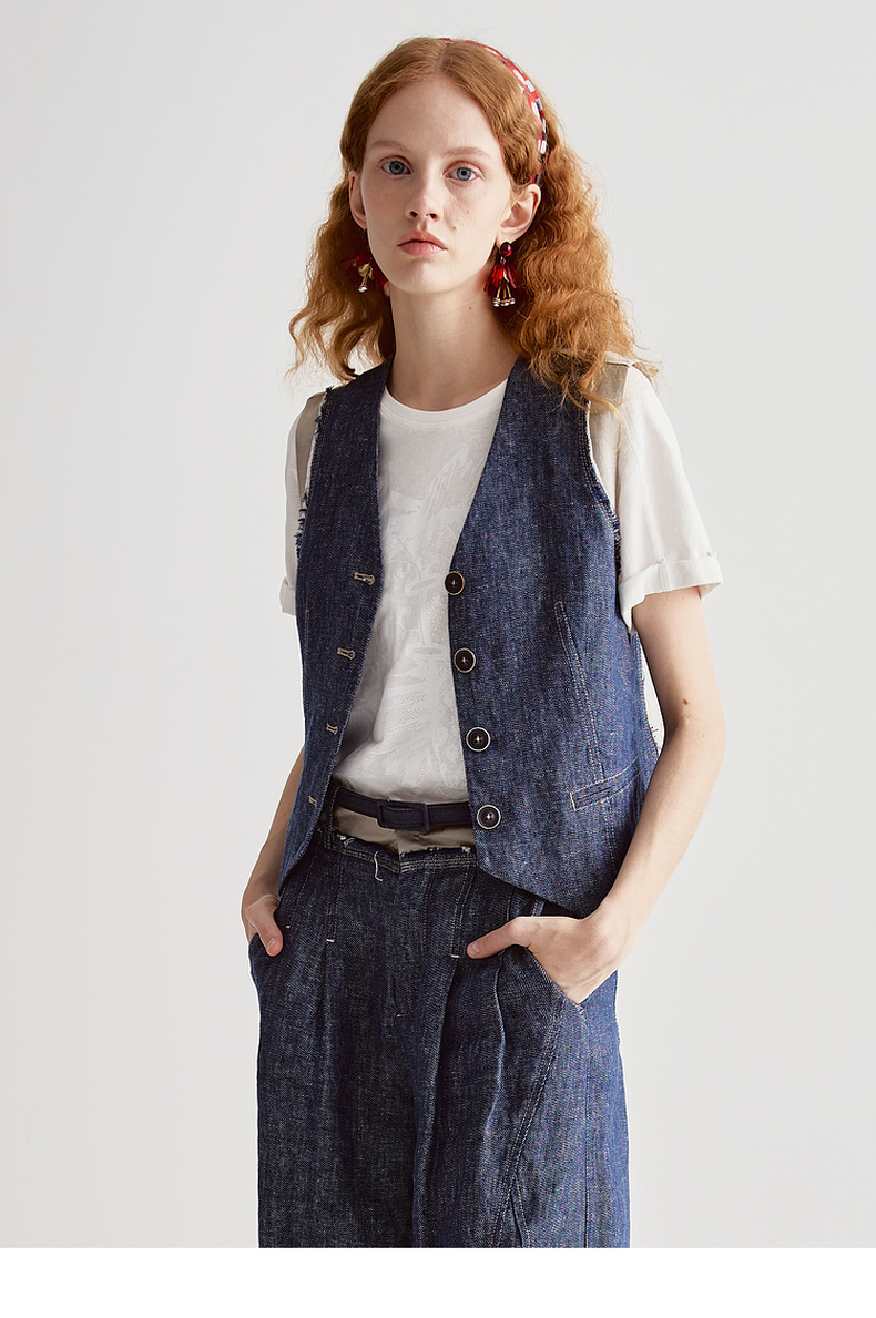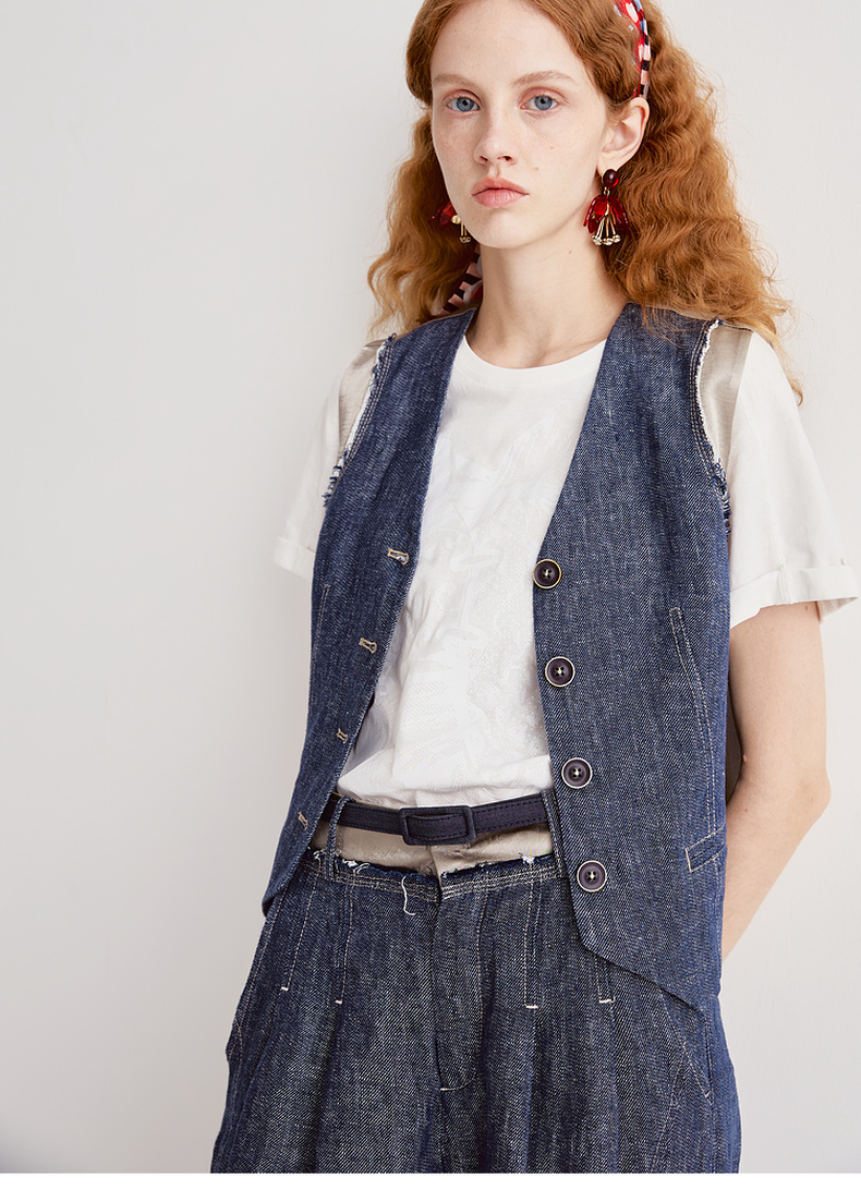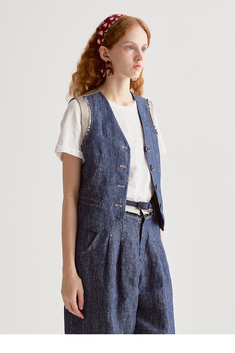 谜底牛仔马夹无袖女2025夏季新品复古风合身X型短马甲252MM0560