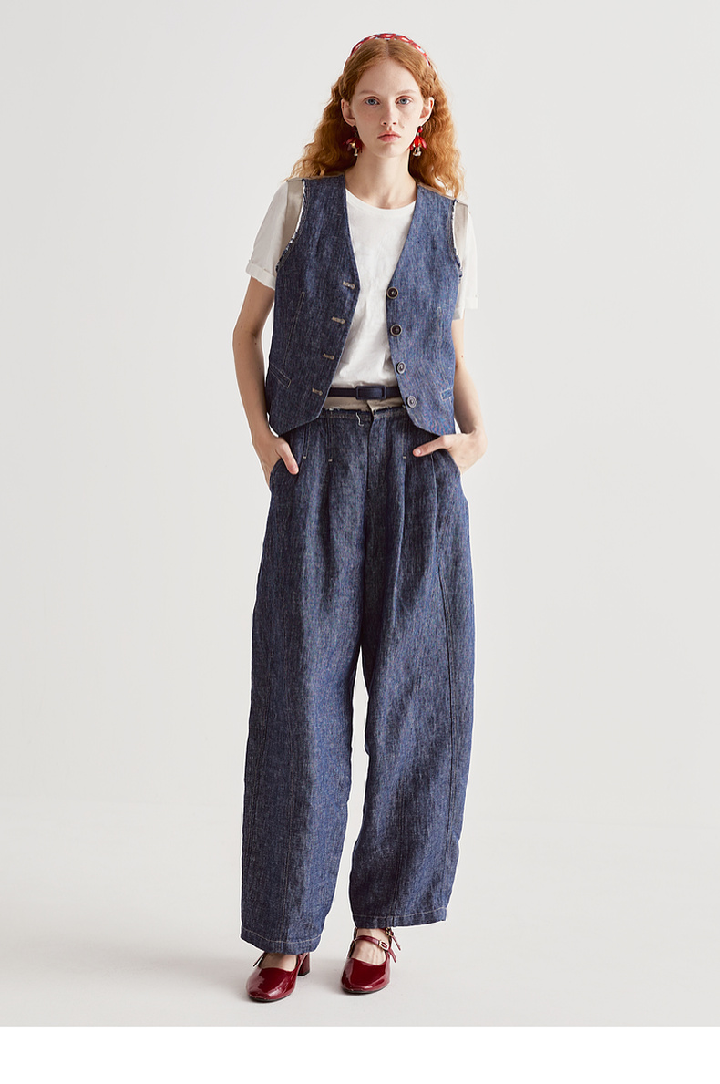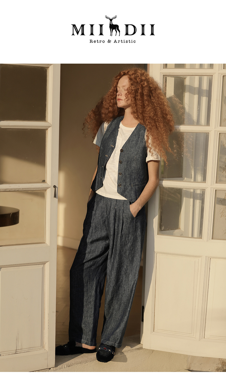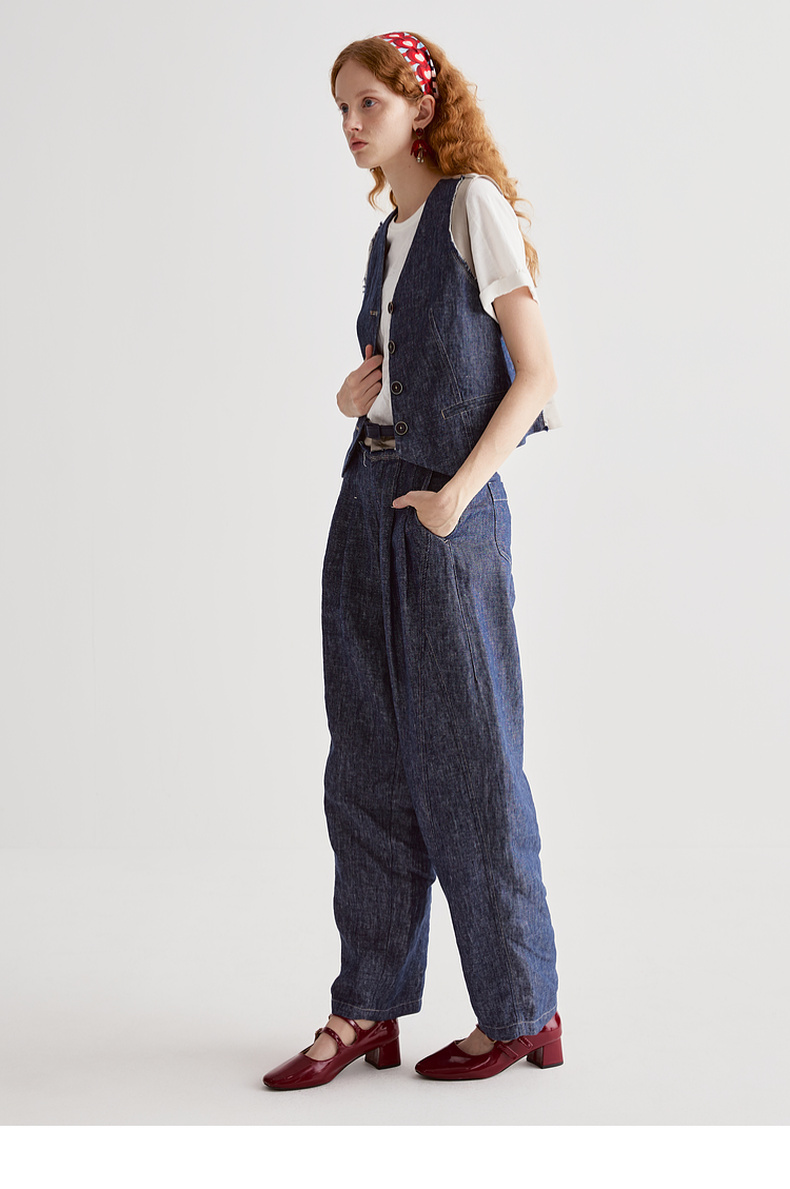 谜底牛仔马夹无袖女2025夏季新品复古风合身X型短马甲252MM0560