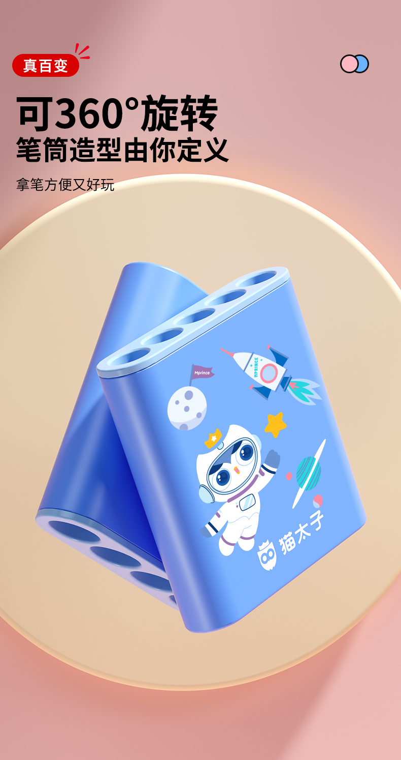 猫太子360度旋转笔筒学生桌面儿童男女孩多功能笔桶收纳盒放笔家用创意高颜值装笔文具简约高级感