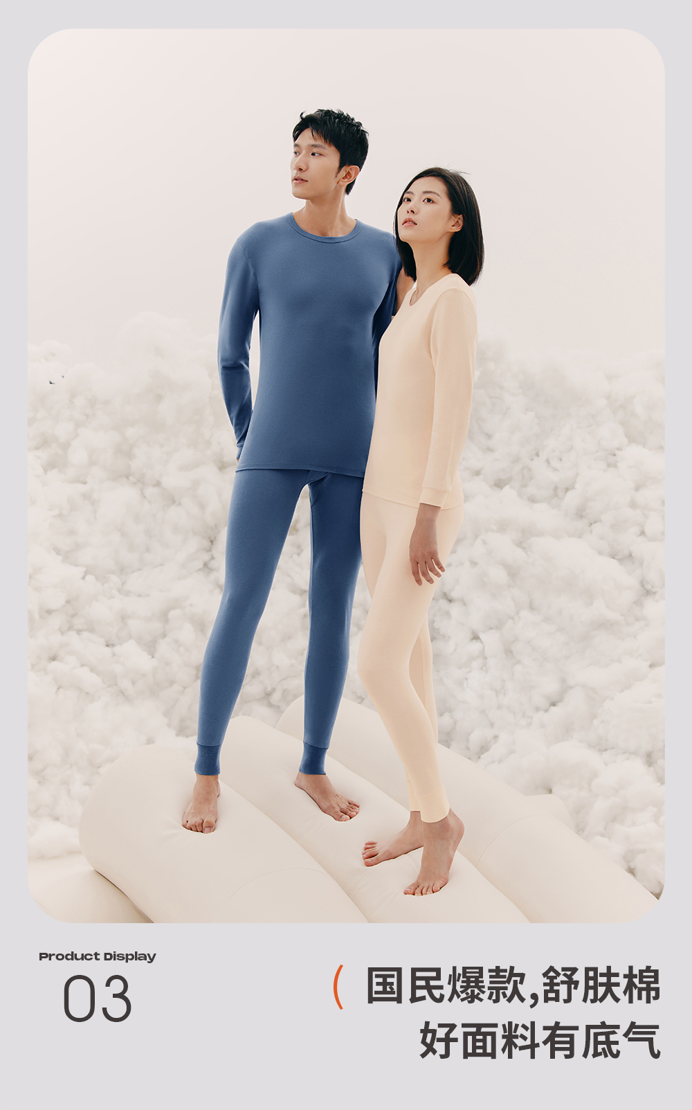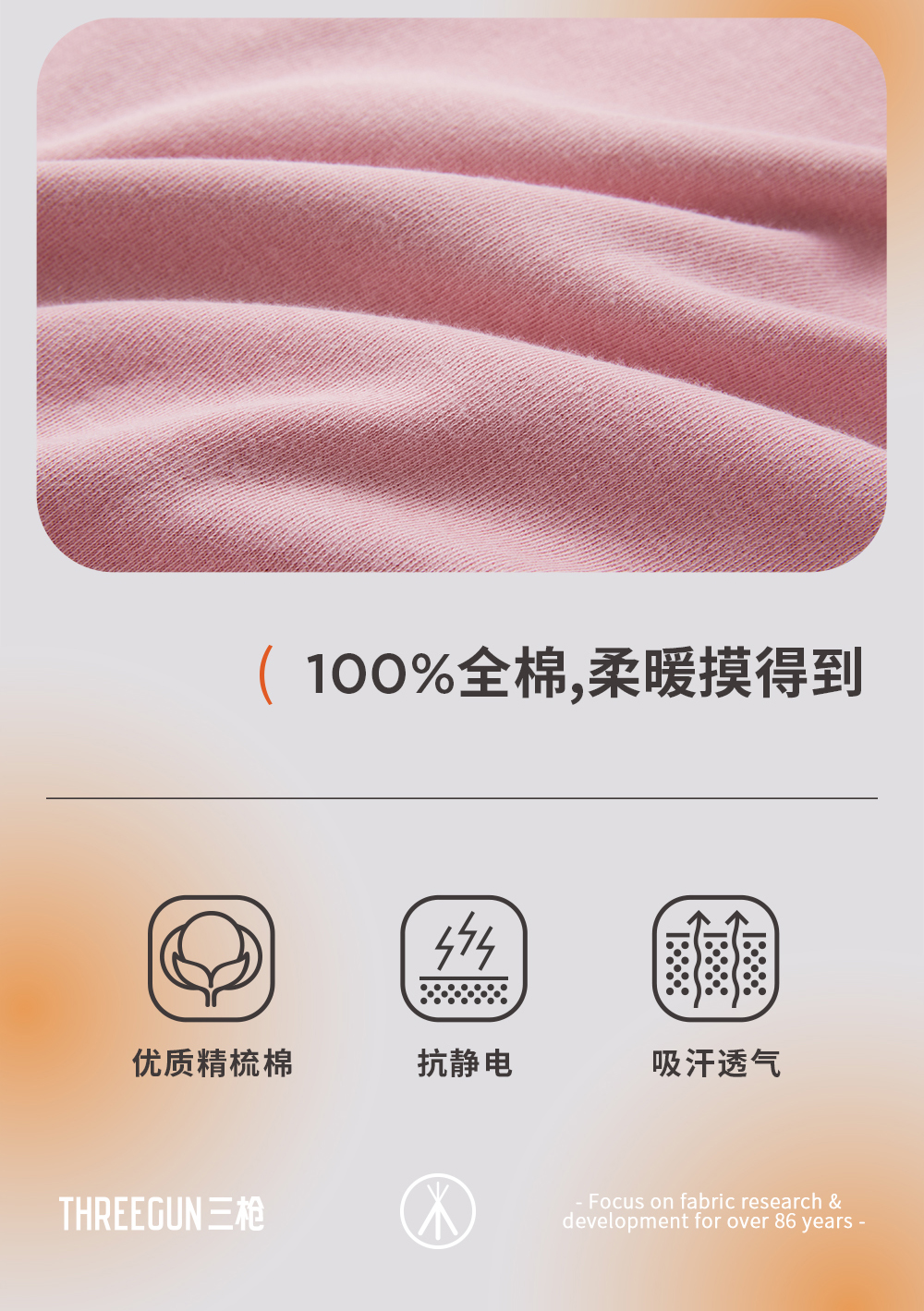 Threegun三枪 【舒肤棉】圆领女士保暖内衣套装-23702D111