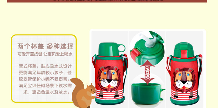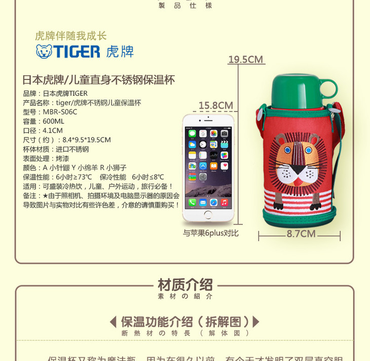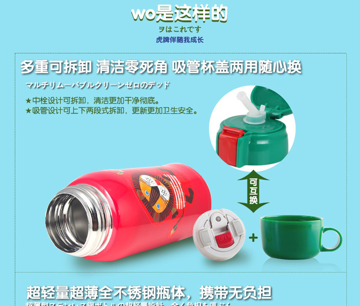 【已下架】日本tiger/虎牌儿童保温杯学生吸管盖杯两用水壶MBR-S06C [福利品]undefined