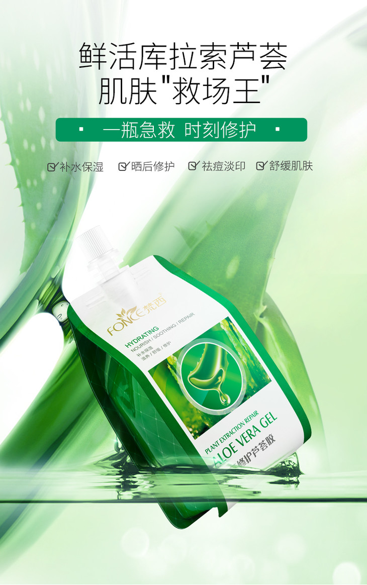 【周六199积分包邮换】梵西芦荟胶正品修复凝胶补水保湿面霜晒后修复护肤品