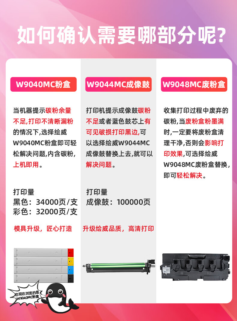 绘威W9040MC粉盒、W9044MC成像鼓、W9048MC废粉盒 适用惠普HP E77822dn E77822z E77825dn E77825z E77830dn E77830z打印机硒鼓