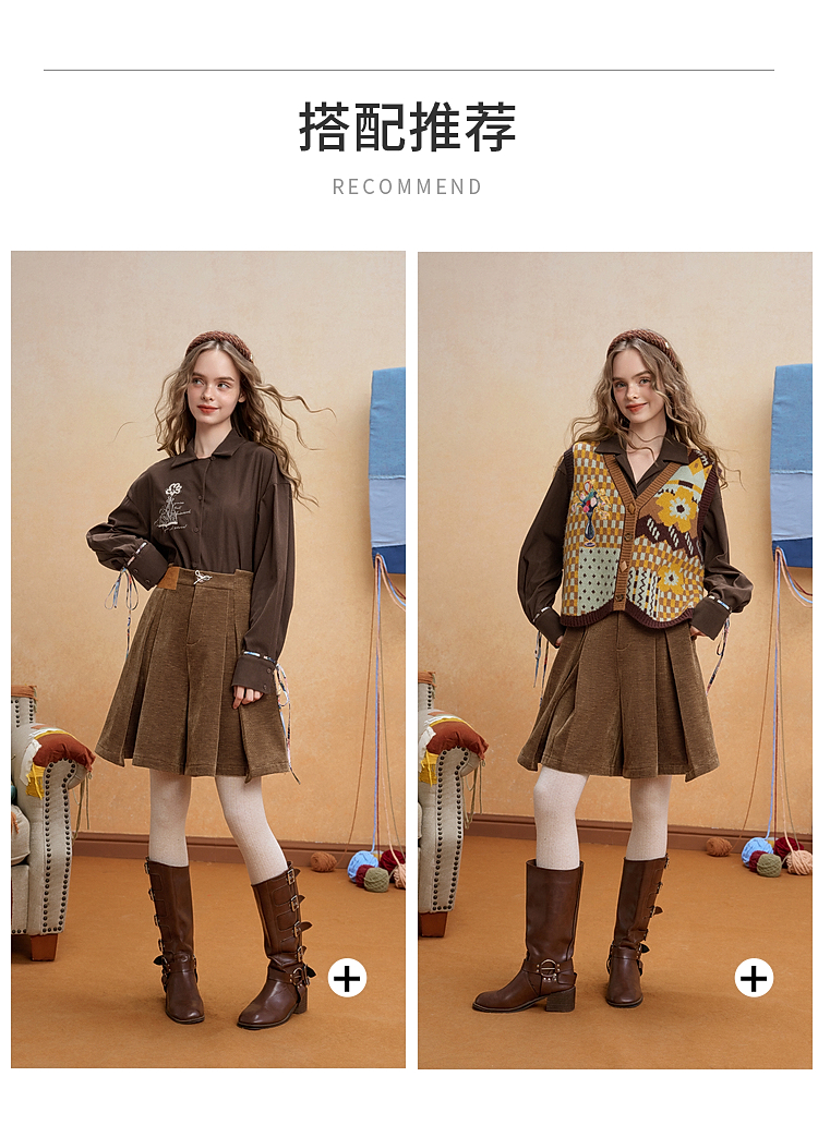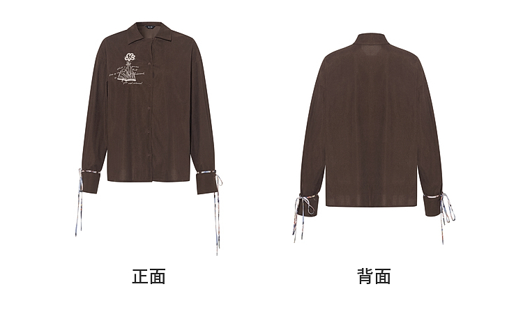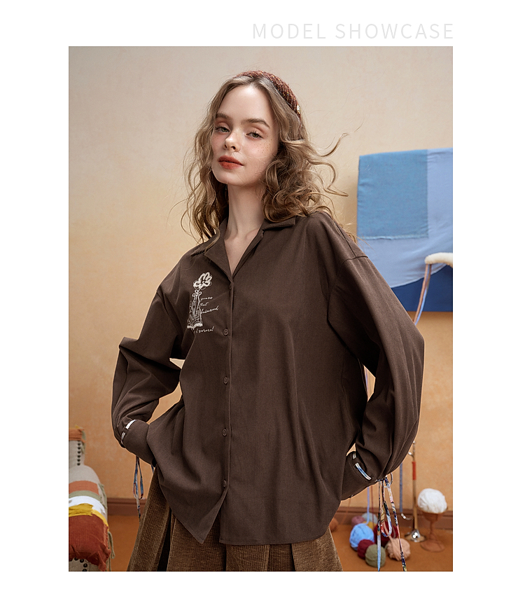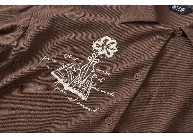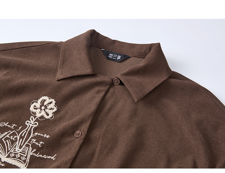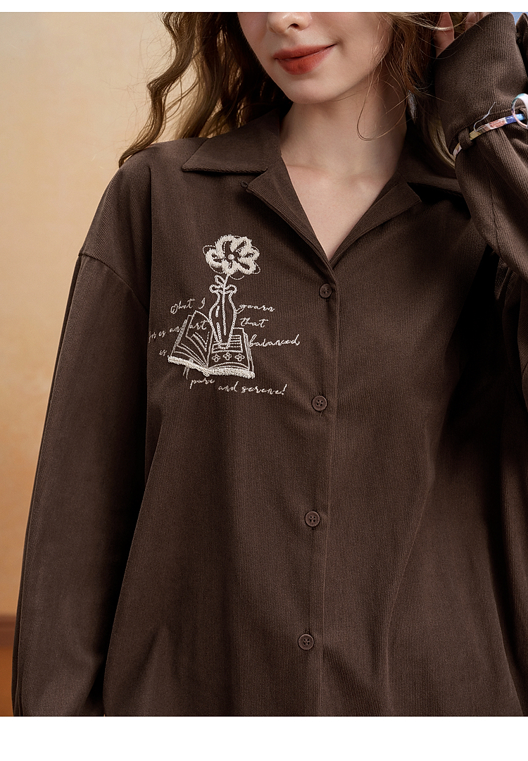 两三事悬停梦境2025冬季新款文艺风印花绑带袖口毛巾绣灯芯绒衬衫