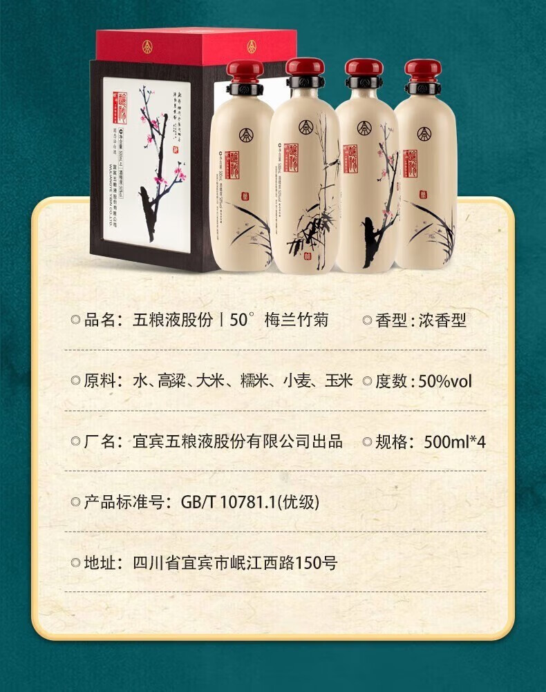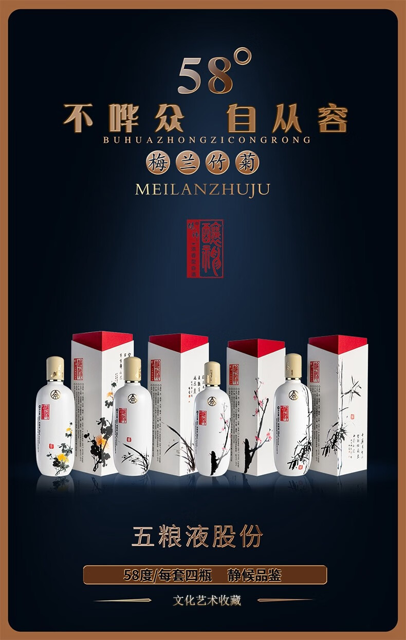 五粮液股份酿神梅兰竹菊礼盒 固态法浓香白酒