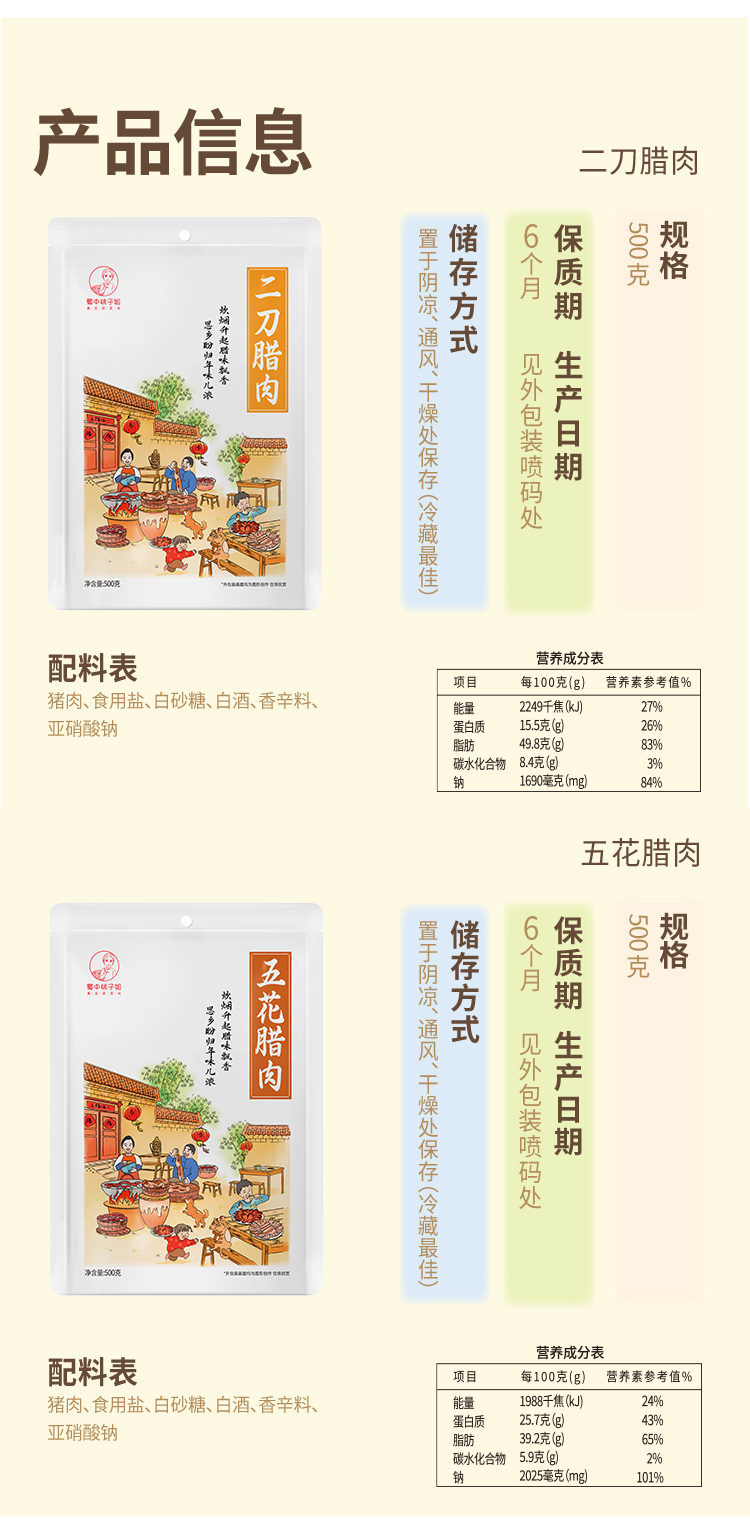 【自营】四川特色风味五花腊肉二刀腊肉2袋