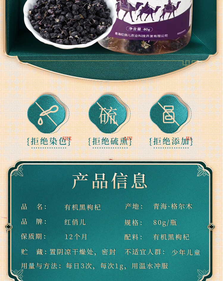 红俏儿 有机黑枸杞80g瓶装 青海黑枸杞含花青素 干吃泡水泡酒 送长辈送礼