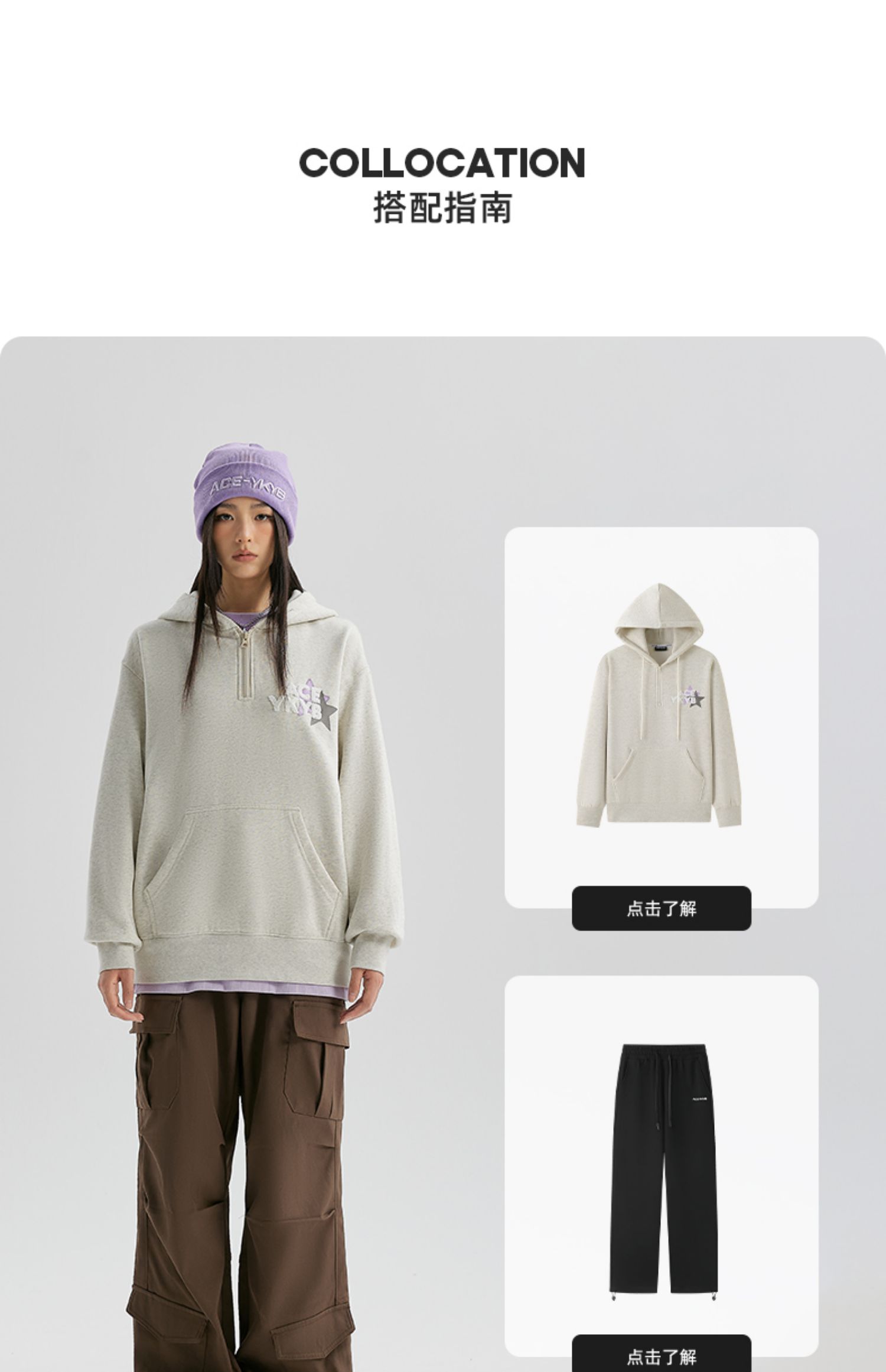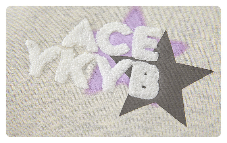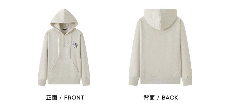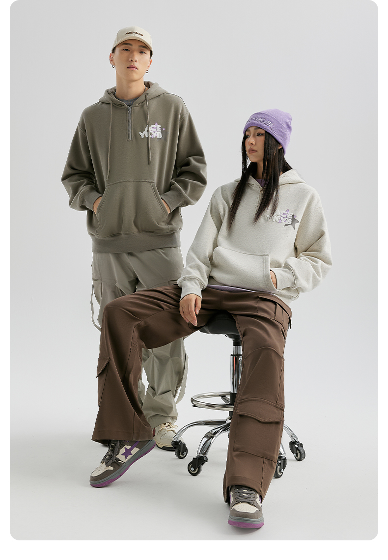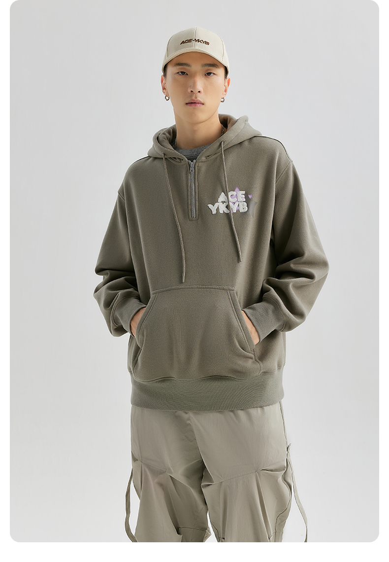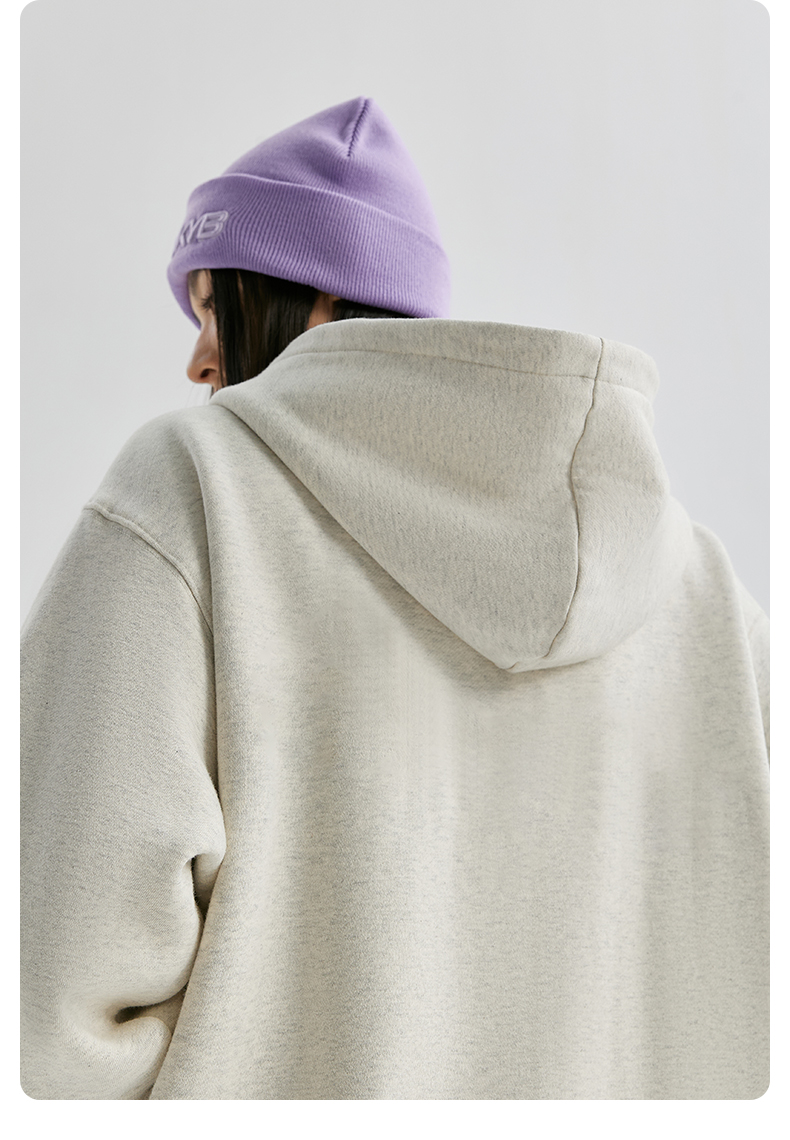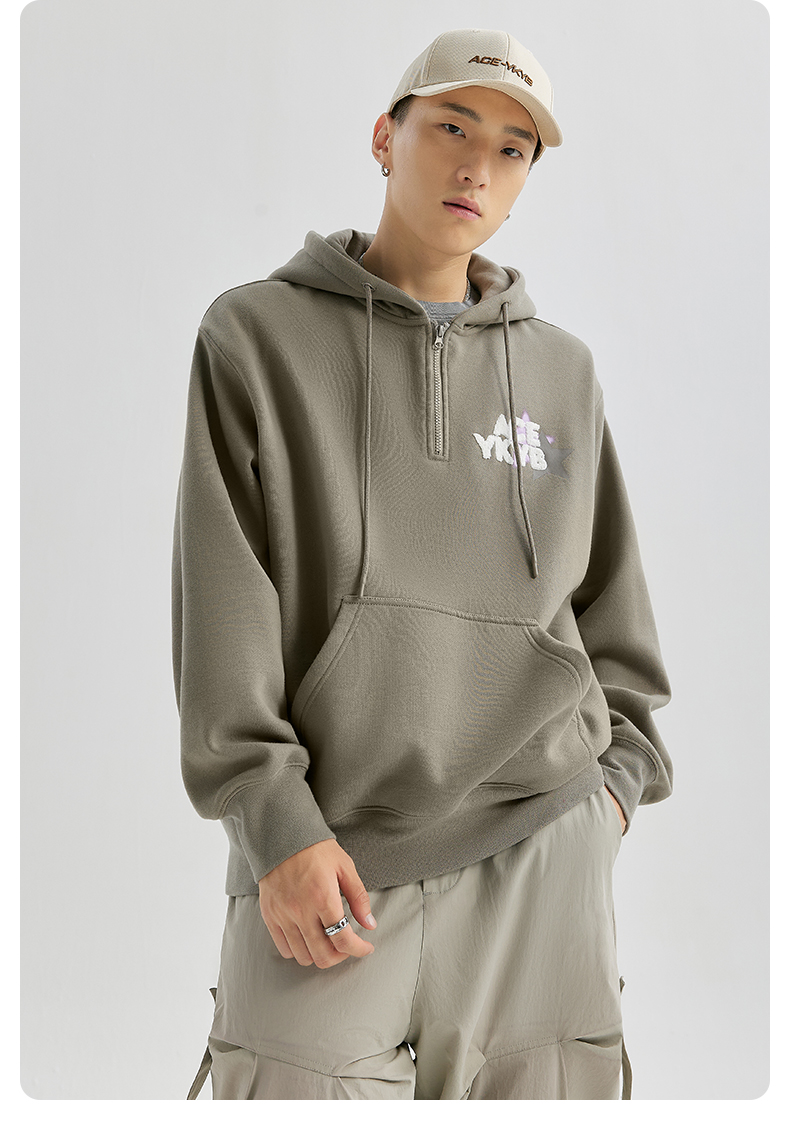 YKYB冬连帽卫衣加绒潮保暖领口拉链外套星星刺绣重磅落肩宽松帽衫
