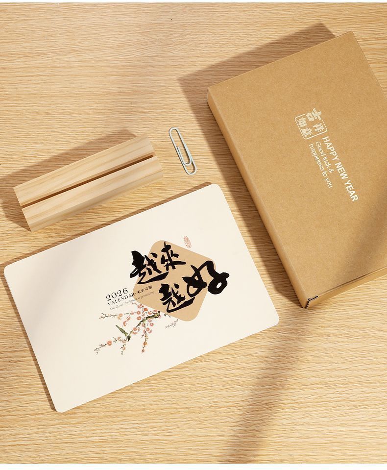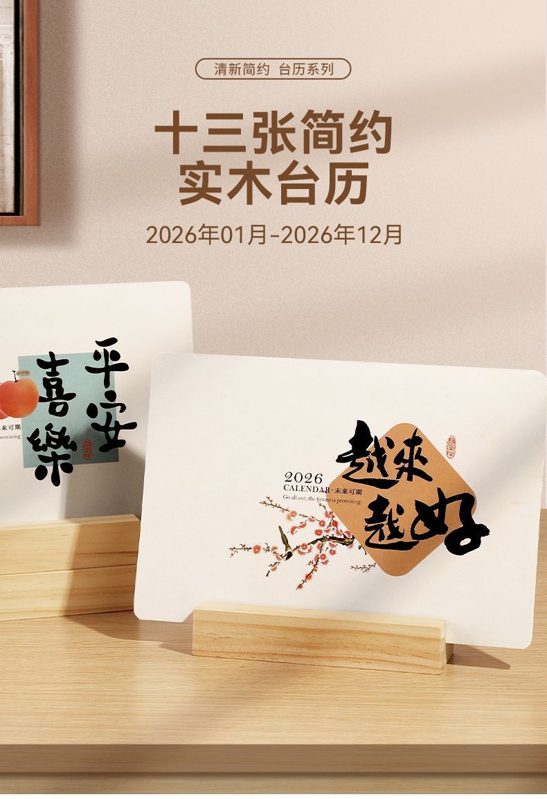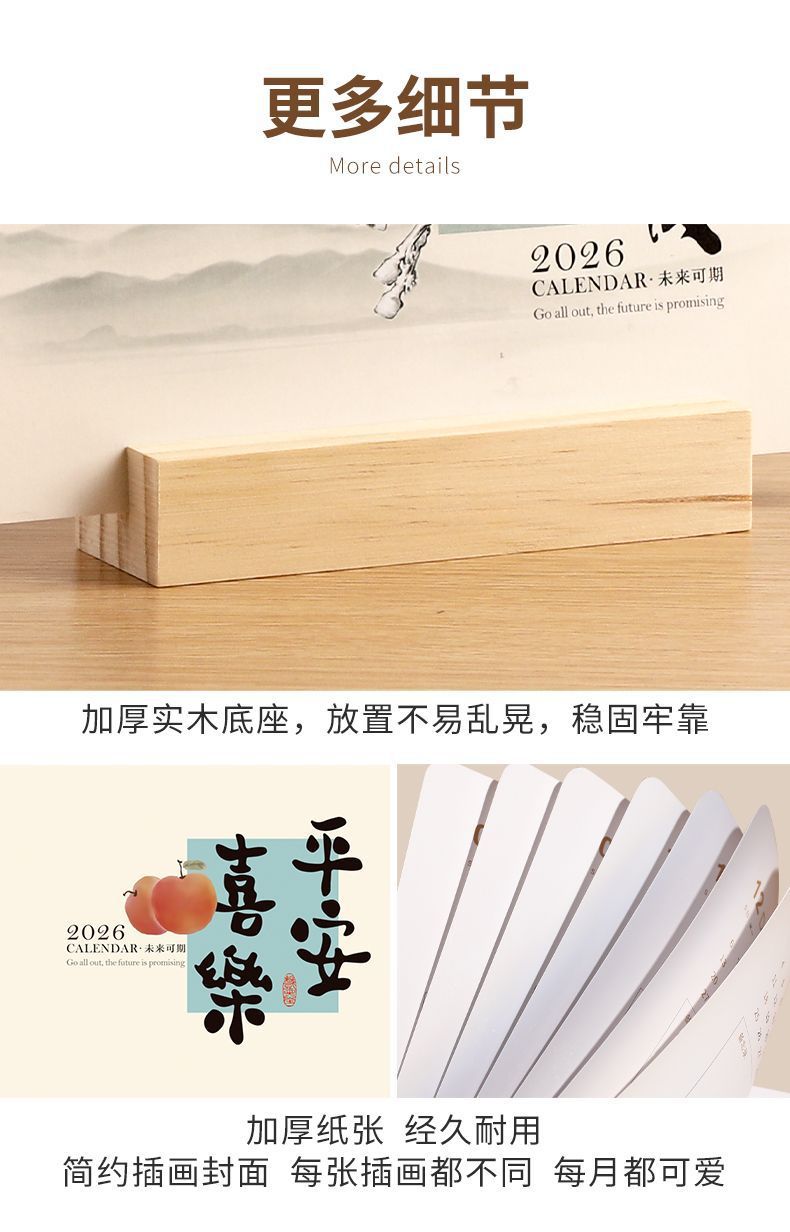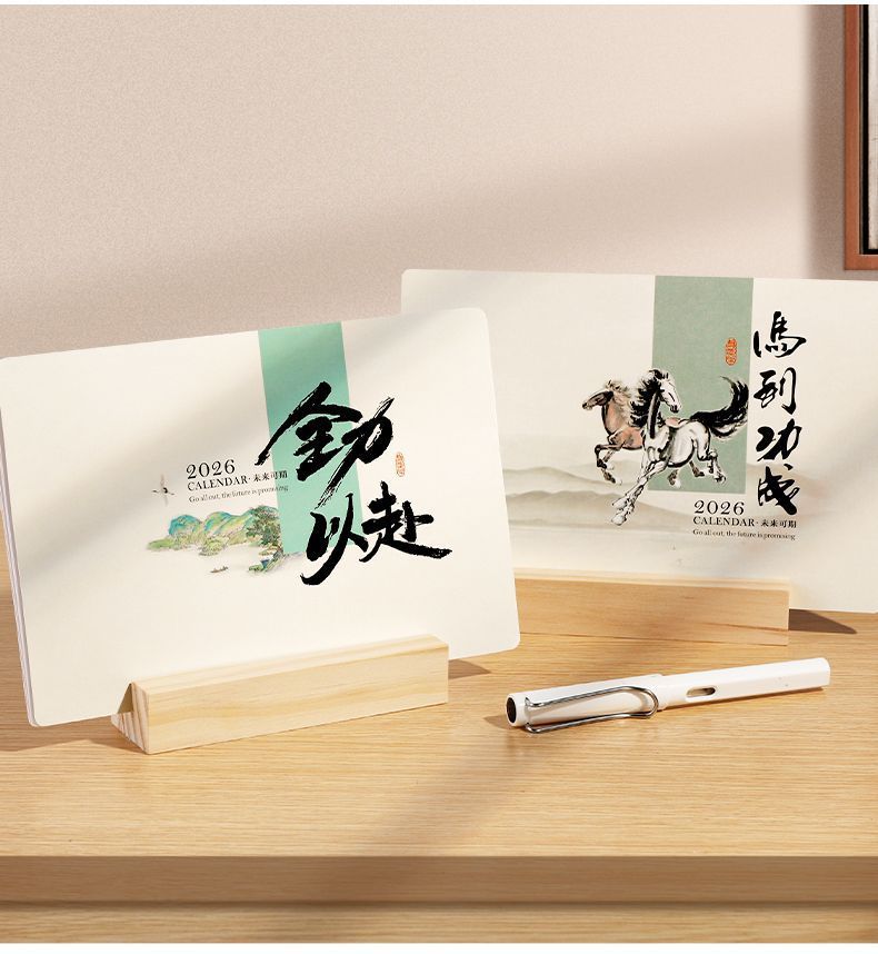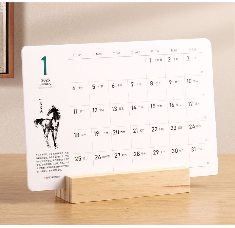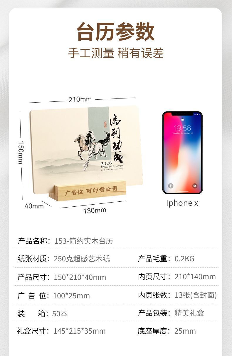 嘉然恒2026年马年新款台历简约实木创意桌面日历摆件商务办公企业