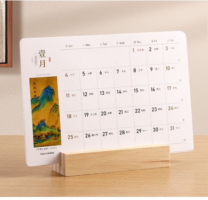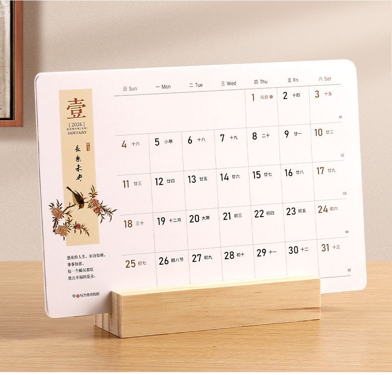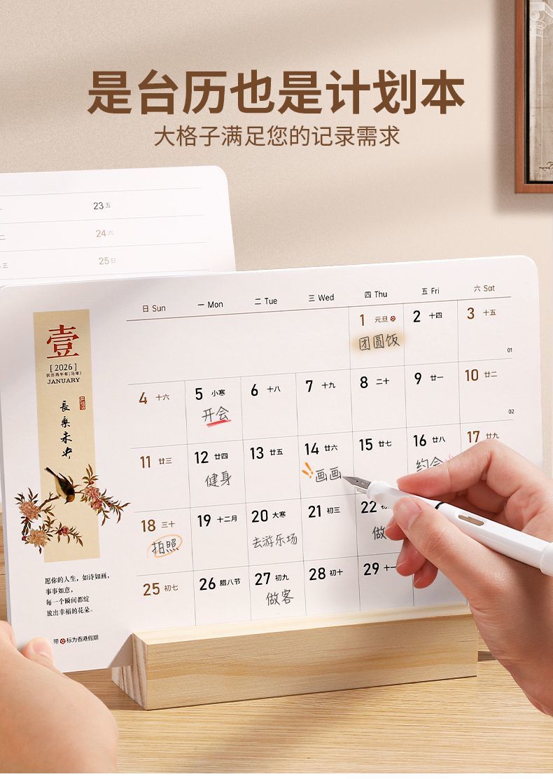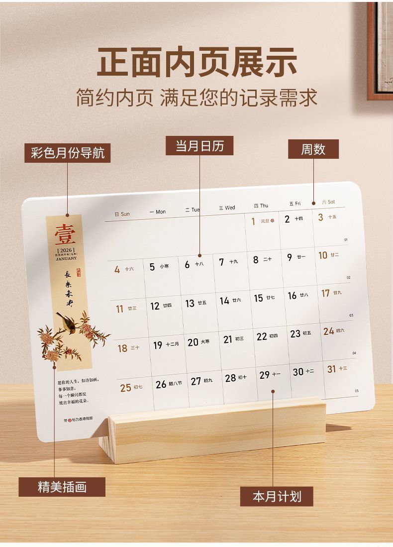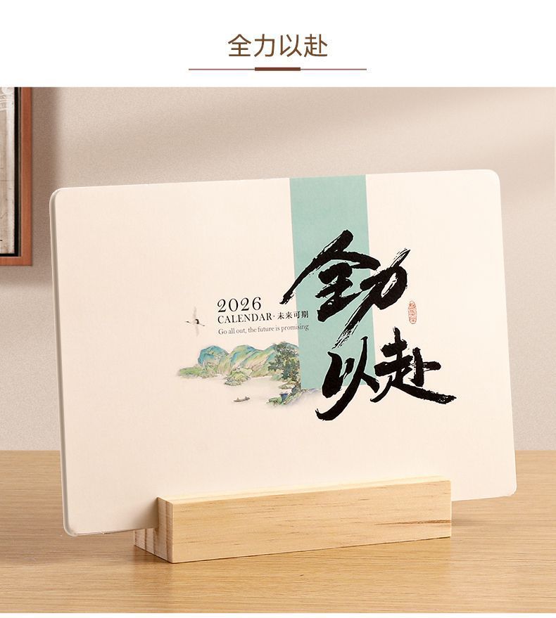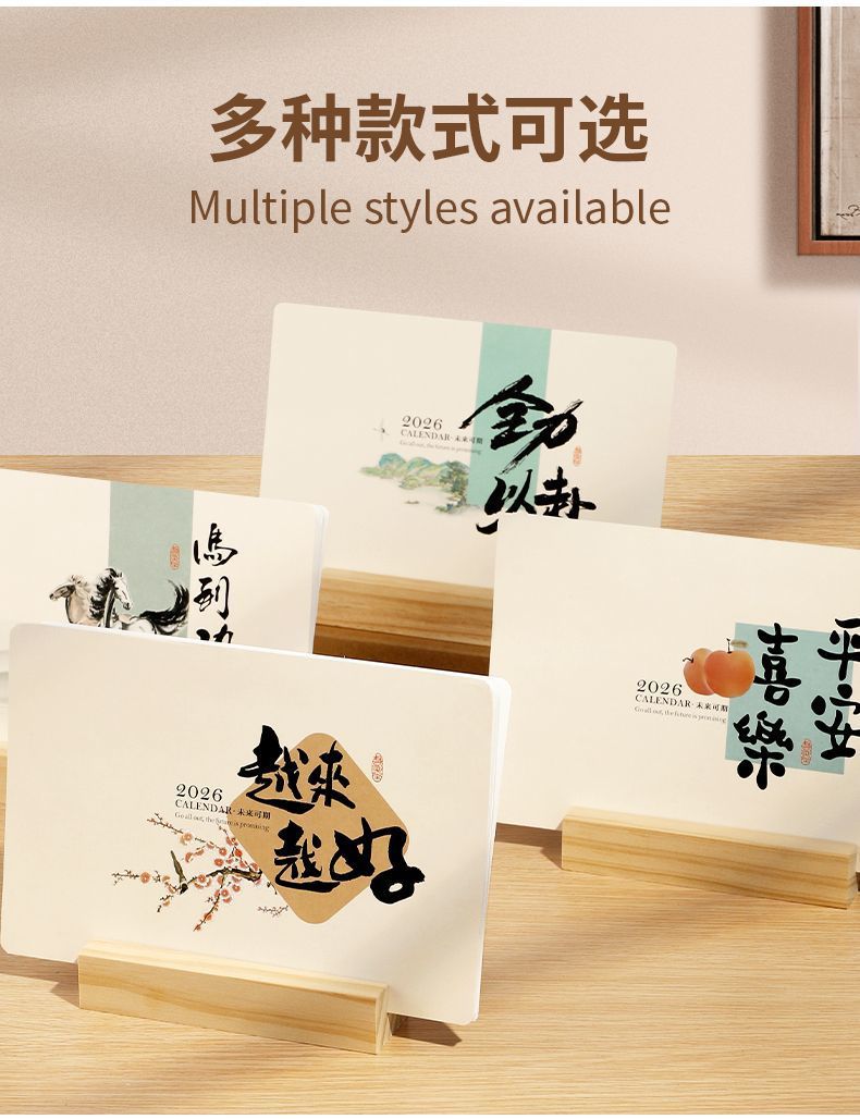 嘉然恒2026年马年新款台历简约实木创意桌面日历摆件商务办公企业