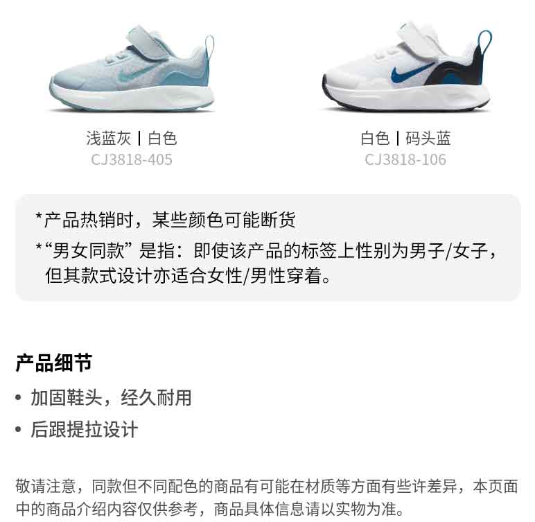 小耐克儿童WEARALLDAY婴童运动童鞋夏季魔术贴透气CJ3818-405