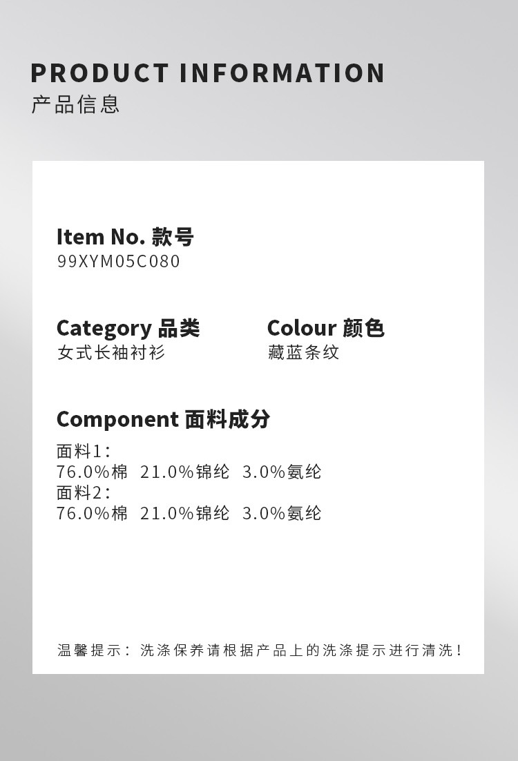面料1:76.0%棉 21.0%锦纶 3.0%氨纶