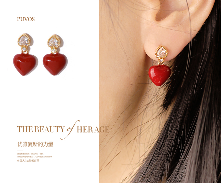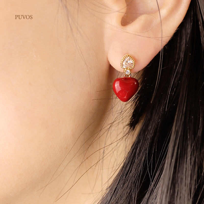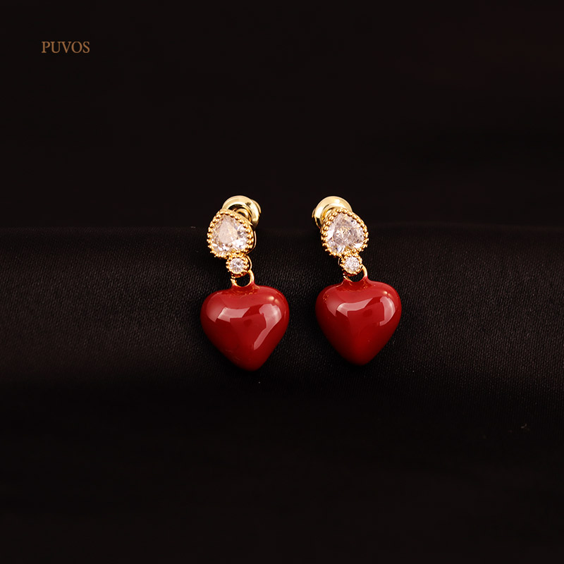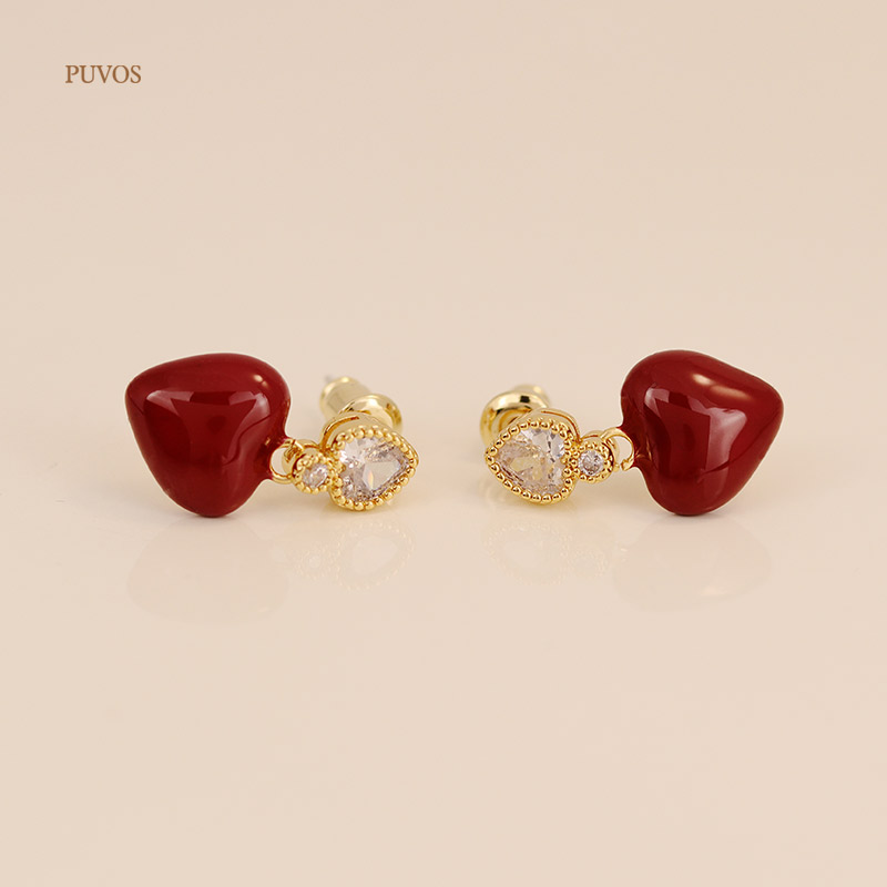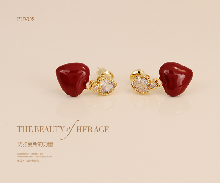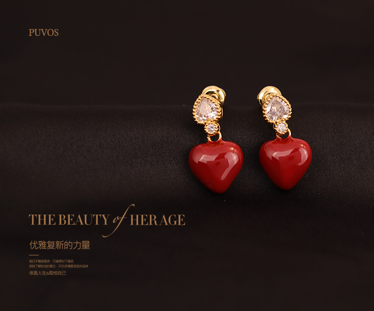 预售|PUVOS普沃斯 爱心锆石镶嵌法式新年耳钉 .潮快闪[福利品]
