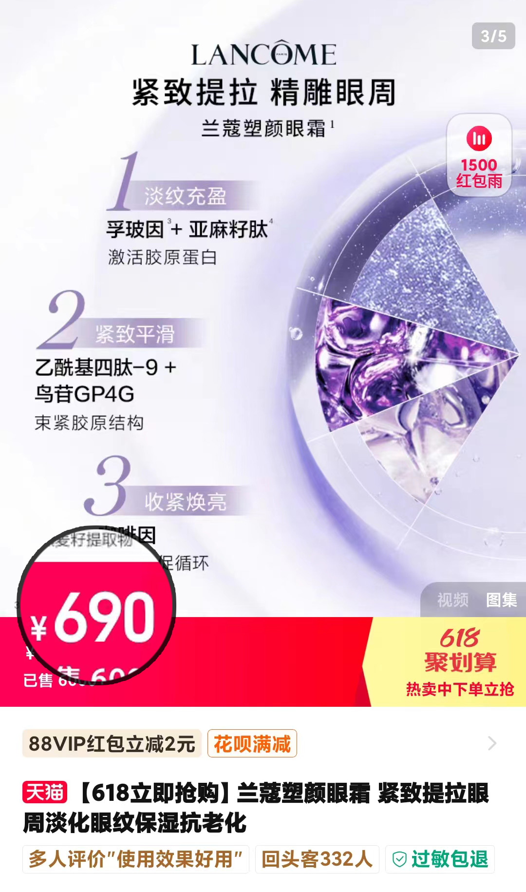 【8.25王炸割肉价】Lancome兰蔻新立体塑颜眼霜15ml(限25年1月)