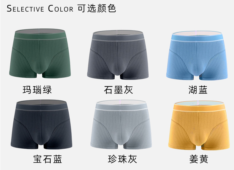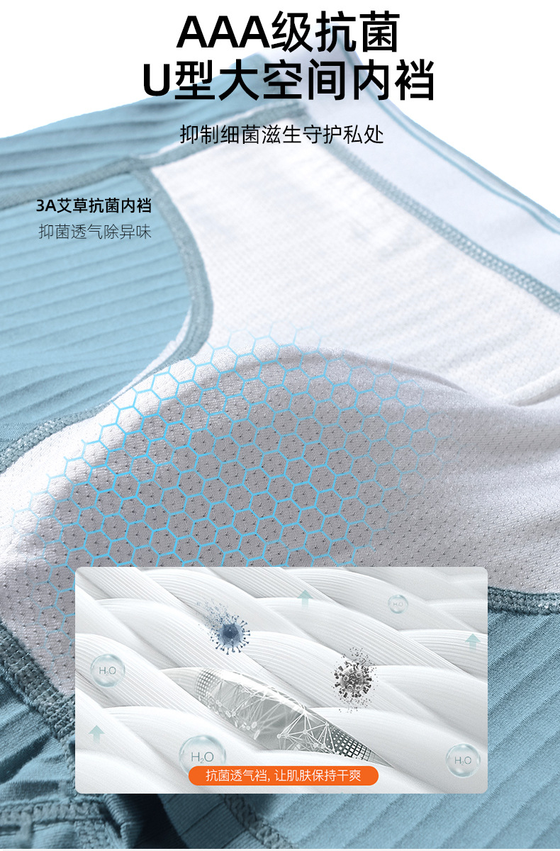 【秋冬新款艾草抗jun99%男内裤】男纯色中腰平角裤精梳棉透气男士内裤 3条装