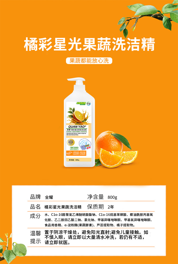 洗洁精 强力去重油无残留 食品家用级果蔬清洗剂 厨房去污清洁洗碗液