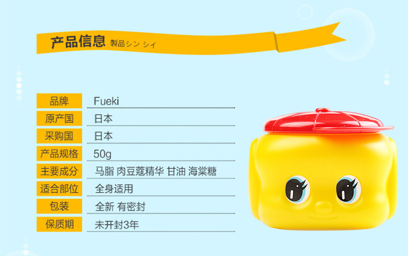 日本Fueki小黄鸭四季马油儿童面霜50g